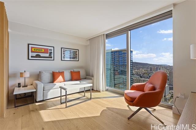 Discover Honolulu luxury reimagined at The Renaissance Hotel & Spa, where modern design meets true resort-style living. This spacious 1-bedroom residence offers the ideal blend of comfort and flexibility, perfect as your private retreat or a short-term rental investment. Enjoy a full kitchen, in-unit laundry, sleek finishes, and floor-to-ceiling glass doors that bring in fresh breezes and capture stunning city views. The building provides a full-service hotel experience with lobby check-in, valet, an on-site café and restaurant, plus an expansive amenity deck featuring multiple pools, a hot tub, cabanas, a state-of-the-art gym, and a full-service bar. Located directly across from Ala Moana Center and moments from dining, shopping, Don Quijote, Walmart, and an indoor golf facility, this is a refined alternative to the bustle of Waikiki. A stylish, flexible, and highly desirable residence in one of Honolulu’s most exciting new luxury offerings.