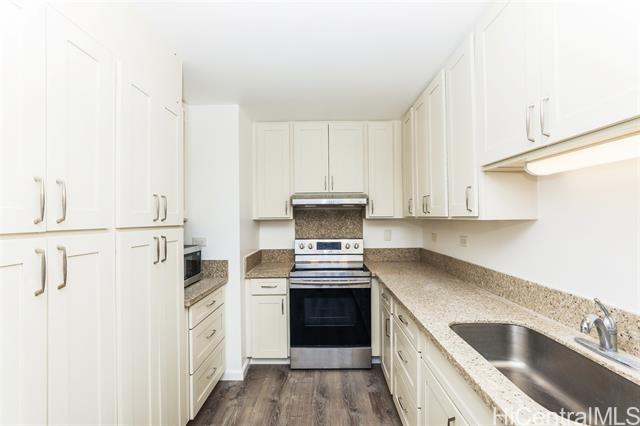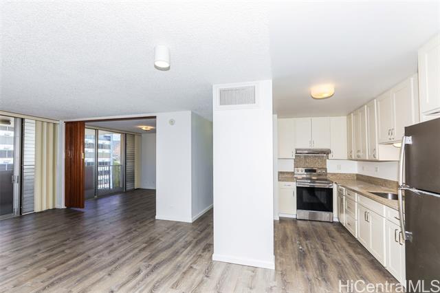Newly renovated, large 3-bedroom unit on the cool side of the building with two full baths. New flooring, paint, kitchen, and appliances. Central air conditioning was installed in all rooms in 2019, and building plumbing was completely replaced in 2019. Two parking spaces are included, one covered. Great location, walking distance from Ala Moana Center, Walmart/Sam's Club, and Don Quijote. Secure building with guest parking, fitness center, and swimming pool.