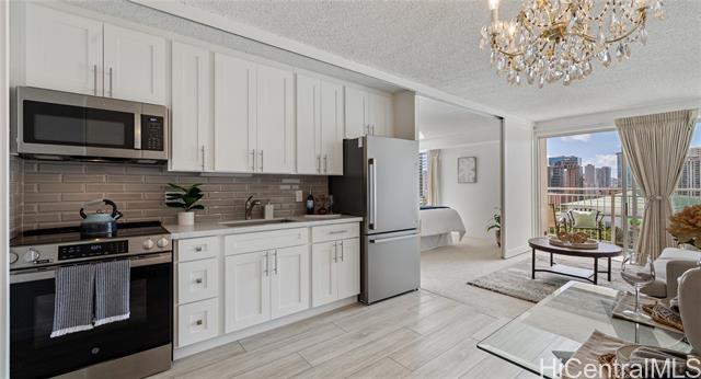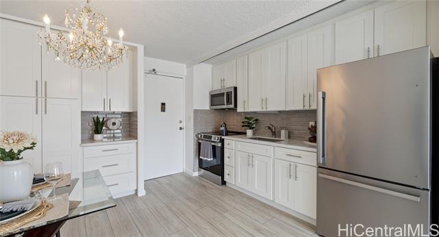 Welcome to the Kapiolani Manor, where location, convenience, style and comfort is sure to welcome you home! This newly remodeled cool condo unit has an open concept kitchen, dining room, living room and new appliances (2024). The possibilities are endless with this 18th floor corner unit with an ocean, city, and mountain views. Start your day with natural sunlight and welcome the evening with a glass of your favorite beverage watching the night sky light up on your beautiful lanai. Kapiolani Manor includes a rooftop pool, deck porch, rec area, laundry facilities on every floor, storage, and assigned parking in a secure garage. It is also conveniently located across from Don Quijote, Paloma Market, Ala Moana Center, famous beaches and a variety of local restaurants in walking/biking distance. Don’t wait, enjoy the view, the location, and everything this unit has to offer!