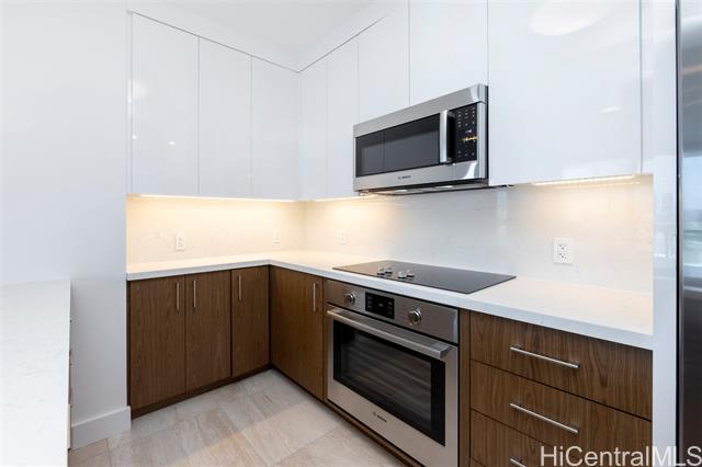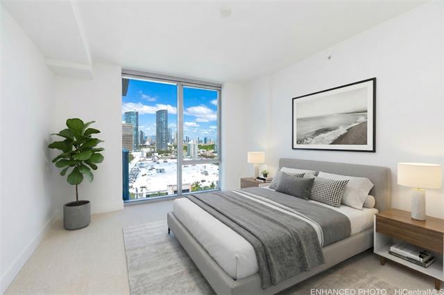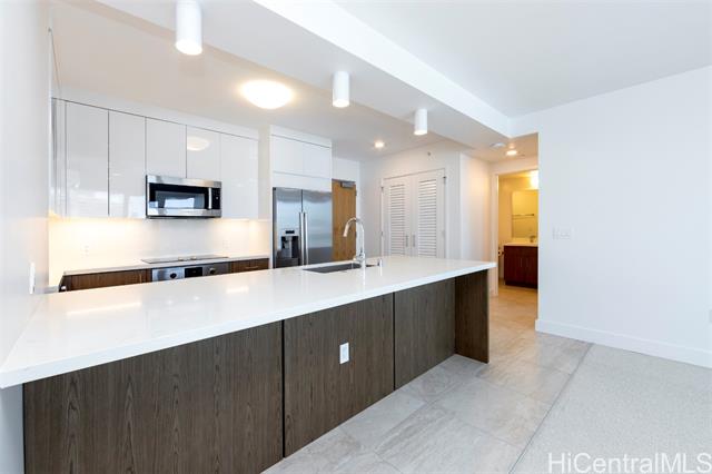 Experience modern island living at Azure Ala Moana, an ultra-convenient high-rise residence completed in 2021. This residence is positioned across from Ala Moana Center and just two blocks from Ala Moana Beach Park, putting dining, shopping, entertainment, and beaches just minutes away. Inside, a bright 2-bedroom, 2-bath floor plan is elevated by high-end features, including a designer kitchen appointed with Bosch appliances and two-tone wood and white lacquer cabinetry. Additional highlights include three split AC zones, sapphire Pacific Ocean views from the lanai, and a primary bedroom suite complete with two closets and a double vanity. Recent upgrades include new luxury vinyl flooring and window coverings throughout. Resort-style amenities feature multiple barbecue cabanas, a large pool with a hot tub, a fitness center, a movie theater, a dog park, guest suites, and more. Capture this ultra-convenient island retreat at Azure Ala Moana #1202.