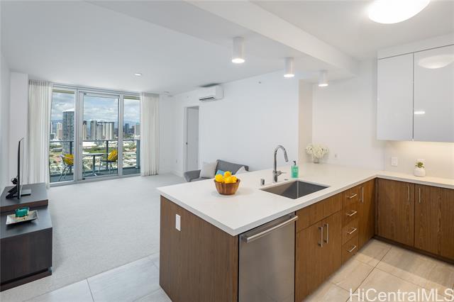 Experience modern island living in this high-floor 2BR/2BA residence at Azure Ala Moana. Enjoy breathtaking ocean, mountain, Magic Island and city views through floor-to-ceiling windows. Features include Bosch appliances, quartz countertops, and a spacious walk-in closet. Resort-style amenities include a pool, spa, gym, BBQ pavilion, lounge, and guest suites. Conveniently located near Ala Moana Center, beaches, and vibrant dining options.
