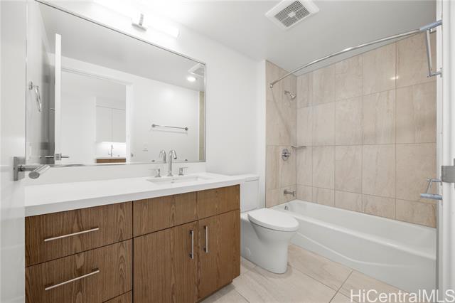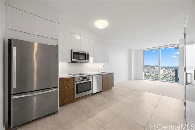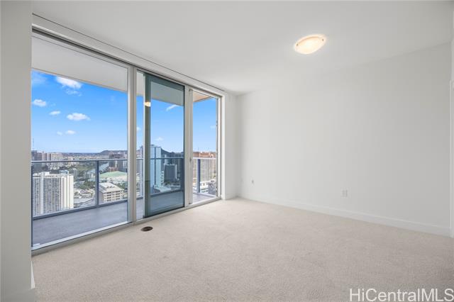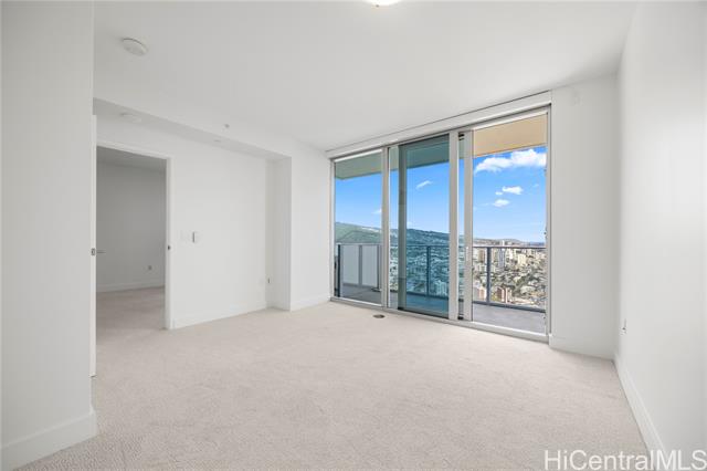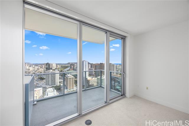 Experience elevated island living in this 1-bedroom residence on the 39th floor of Azure Ala Moana. The home features tile flooring in the kitchen and bathroom, carpet in the living area and bedroom, and a spacious lanai with sweeping ocean and city views. Developed by ProsPac Holdings Group and completed in 2021, Azure offers modern finishes and resort-style amenities including a pool, whirlpool spa, fitness center, theater, party room, BBQ areas, and guest suites. Located just steps from Ala Moana Center, you’ll enjoy easy access to world-class shopping, dining, and daily conveniences. At 578 sq. ft. with rare 9’ ceilings, the interior feels larger than many competing 1-bedroom units, helping keep carrying costs relatively lower. The desirable “03” stack is the most forward-facing 1-bedroom line in the building, offering the most expansive ocean views—unlike other 1-bedrooms that look past another unit’s lanai. Only six other “03” residences were built as 1-bedrooms, making this a rare opportunity. This residence is also sold with an additional storage room on the 2nd floor.