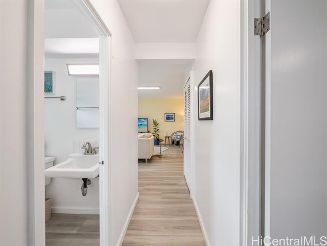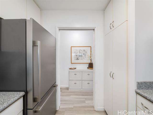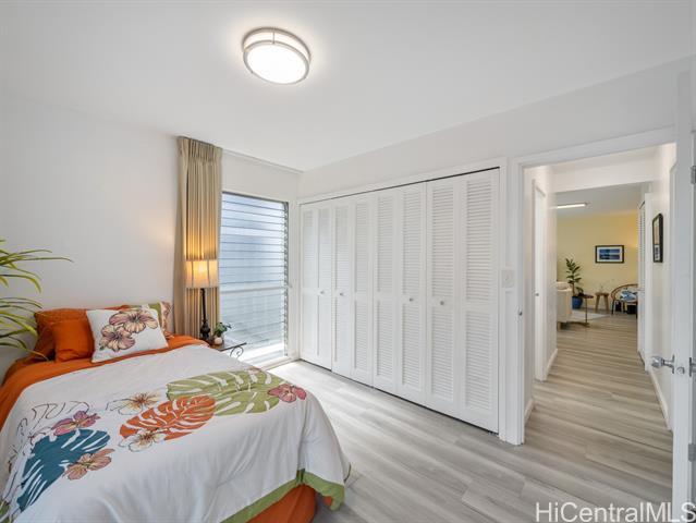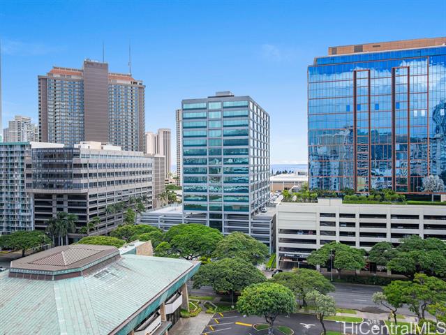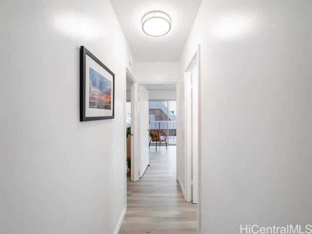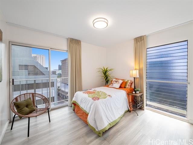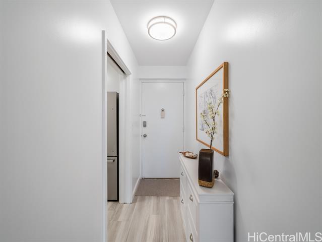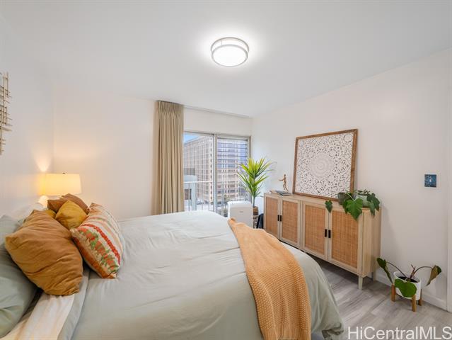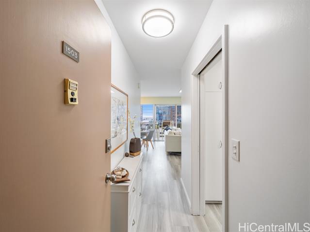 Welcome home to Coty Tower — a rarely available corner unit on the 15th floor featuring 2 bedrooms, 2 bathrooms, and 2 assigned parking stalls. Enjoy partial ocean, city, and treetop views from this bright and breezy residence. The unit has been tastefully updated with vinyl flooring, fresh paint, modern appliances, tinted windows, curtains, and updated lighting and plumbing fixtures. Popcorn ceilings have been removed and skim-coated for a clean, modern look. Coty Tower is a secure, well-maintained building with only four units per floor, resident manager, and FOB access. Conveniently located near Ala Moana Shopping Center, Don Quijote, Walmart, Target, beaches, dining, and bus lines — offering the best of city living in the heart of Honolulu. Washer/dryer in unit.