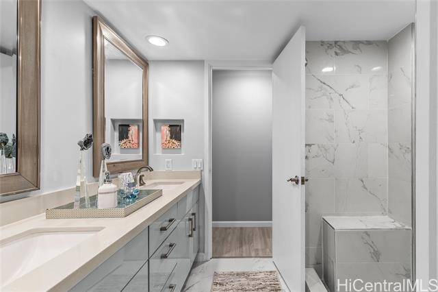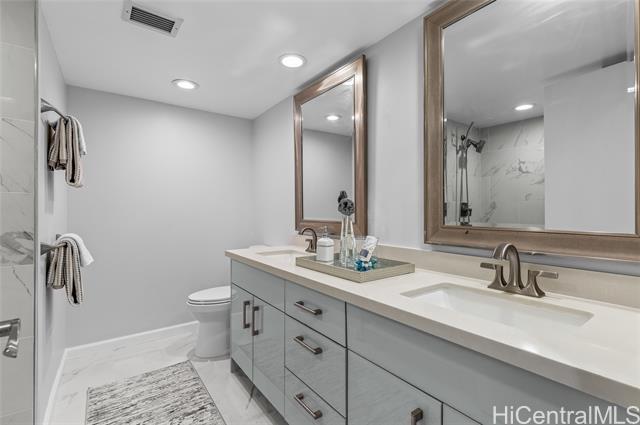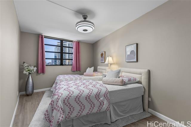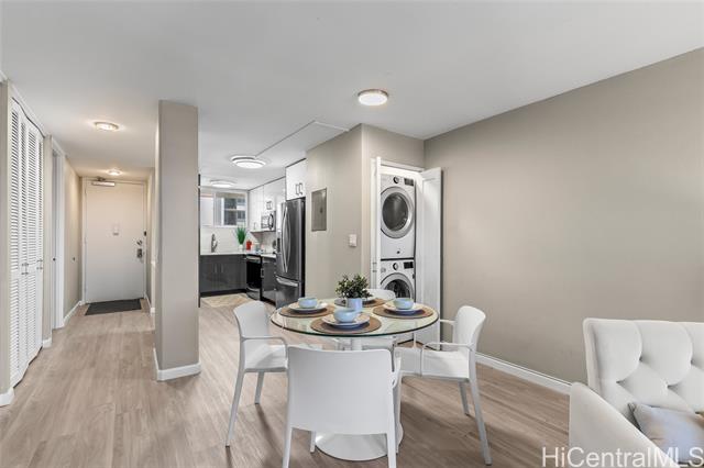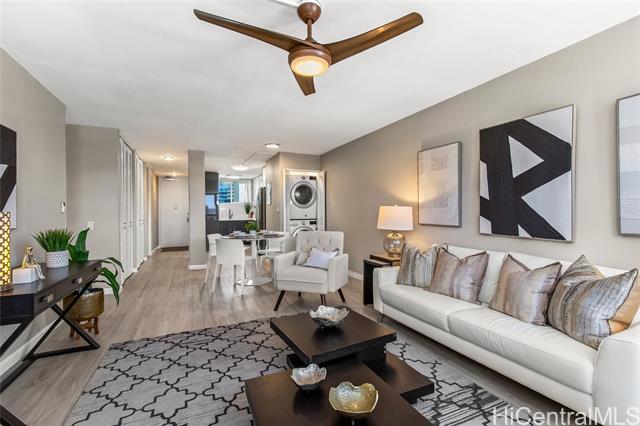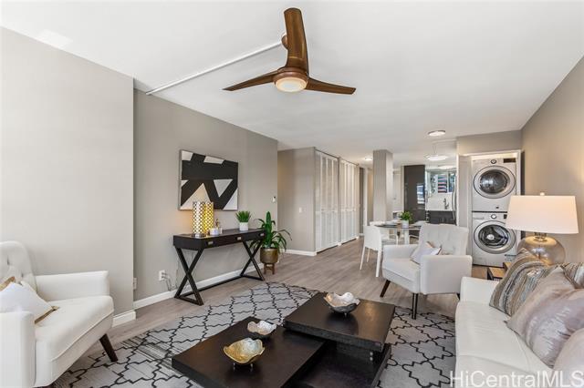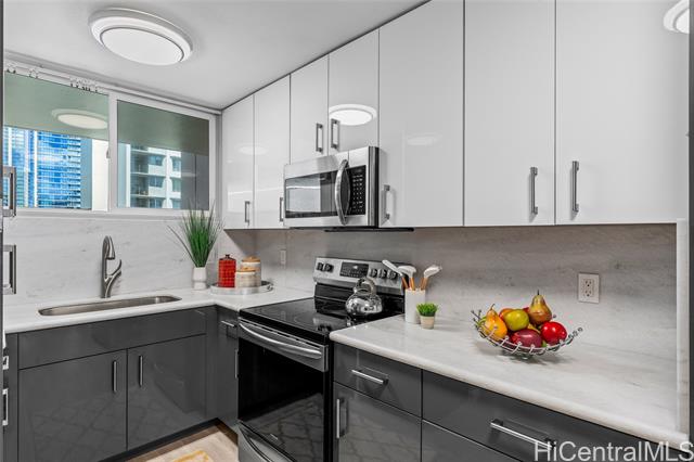 Live in the heart of Honolulu! This rarely available 3-Bedroom/2-Bathroom unit at Kapiolani Bel-Aire offers the perfect blend of comfort, convenience, and luxury. This beautiful unit has been fully renovated with luxury vinyl flooring, granite countertops and backsplash in the kitchen, complemented by lovely high-gloss cabinets, and stainless-steel appliances and sink. Large primary bedroom! Both the Primary and 2nd bathroom have been upgraded with tile flooring, matching tile showers, quartz countertops, and high-gloss cabinets. The LG front-load washer & dryer units are situated just off the dining and living room area in a double door enclosure to optimize space and convenience. Modern light fixtures throughout the unit and retractable blade ceiling fans with built-in Bluetooth enabled speakers in all 3 bedrooms. Kapiolani Bel-Aire has a swimming pool, nicely designed lobby, and assigned storage locker for the unit. Located just across the street from Don Quijote. Walking distance from Ala Moana Shopping Center, beaches, dining, and entertainment. Pet friendly: one pet per unit up to 20 lbs. Perfect for first-time homebuyers, investors, or people looking to upgrade!