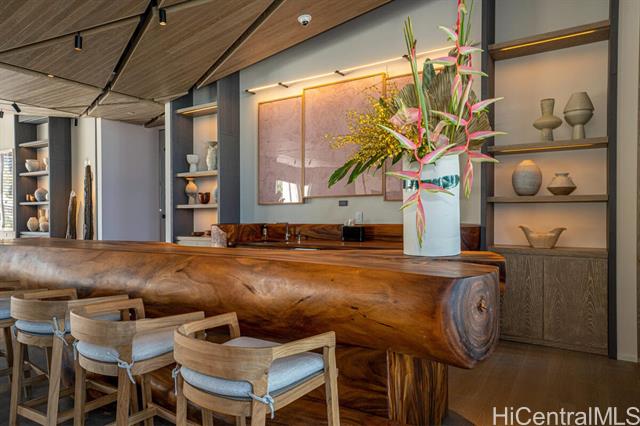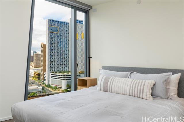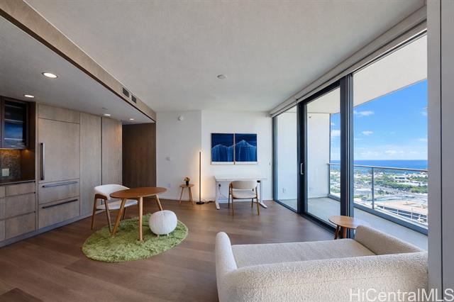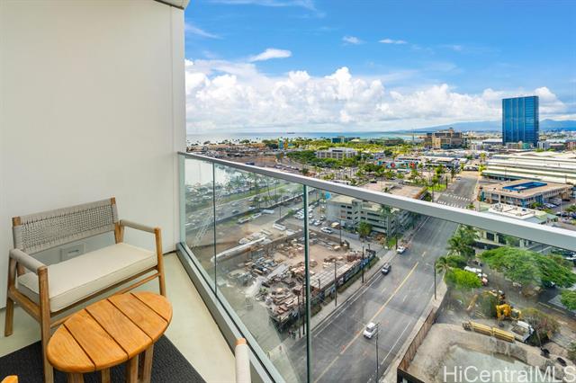 Koula 1303 is a beautifully designed 1-bedroom residence in the heart of Ward Village. Featuring wood flooring throughout (except the bathroom), this unit offers a modern yet warm interior with a functional open layout. The living area flows seamlessly to a usable private lanai, which becomes a true extension of your living space — ideal for morning coffee overlooking Victoria Ward Park or relaxing evenings with a touch of ocean view just beyond. Positioned at an ideal height, you enjoy both privacy and perspective. Step outside and experience the perfect blend of greenery and blue horizon. The kitchen includes premium appliances, sleek cabinetry, and an in-unit washer and dryer for everyday convenience. One compact parking stall (P6-129C) is included. Optional storage room S6-3 is available for $40,000. Enjoy Koula’s resort-style amenities and unbeatable location just steps from Whole Foods, Ala Moana Beach Park, dining, and shopping. An amazing opportunity to own in one of Kakaako’s most desirable buildings.