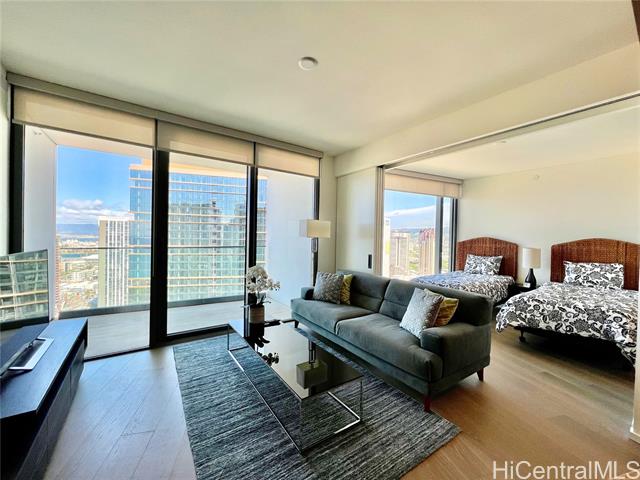 Seldom used high floor unit with views of coastline, ocean, mountain and park. Furniture included in the the price at no value. Koula is one of the newer projects in the Ward Village where you enjoy fine dining, Whole Foods, retail shops, Straub urgent care and entertainment close by. Resort-style amenities include lap swimming pool, spa, fitness center, BBQ cabanas, event rooms, dining bar, chef's kitchen, a spacious lounge, a kid's play area, a newly opened park and guest suites. Enjoy the incomparable lifestyle offered by Ward Village Kakaako!
