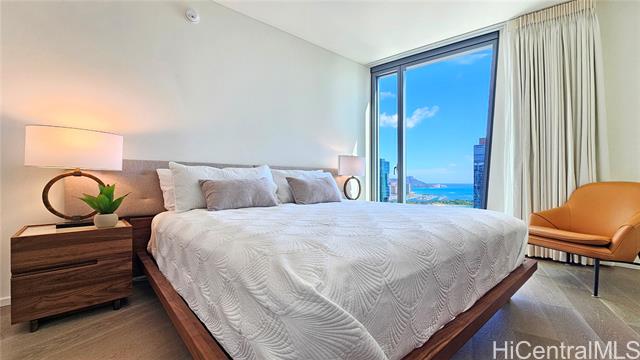 Experience modern island living at Koula, a luxury residence in the vibrant Ward Village community. This 2-bedroom, 2-bath home featuring beautiful views of Diamond head, the marina and the ocean views. The thoughtfully designed kitchen includes Miele appliances, natural stone countertops, and custom cabinetry. Residents enjoy over an acres of resort style amenities, including a lap pool, cabanas, BBQ and outdoor dining pavilions, a fitness center with treatment room, children's play area, a great lawn, dog park, chef's/catering kitchens adjacent to a grand dining room and four guest suites! Perfectly situated next to Victoria Ward Park and just steps from Ala Moana Beach, world class shopping and dinning.