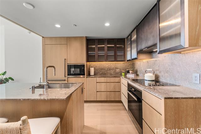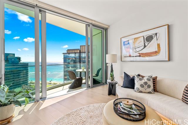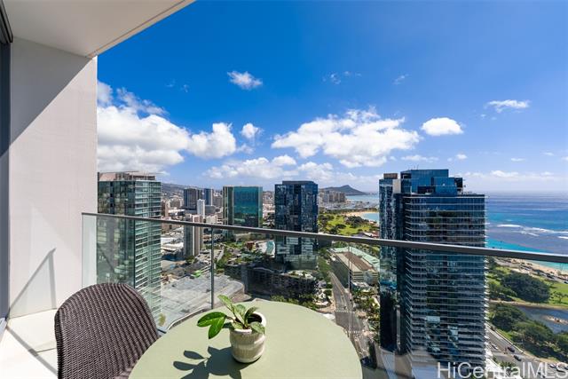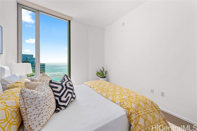 Super VALUE! Wake up & unwind to BEAUTIFUL OCEAN, MARINA, DIAMOND HEAD, PARK & CITY views from this coveted 02 stack—the largest one-bedroom floor plan in the building—positioned on the PENTHOUSE-level 40th floor. Experience luxury as floor-to-ceiling windows fill the home with natural light, highlighting elegant finishes, natural stone countertops, premium Miele appliances, motorized blinds, and a spa-like bath with a large walk-in shower, & custom closet systems. The usable lanai expands your living space to enjoy morning coffee as the sun lights the sky. Situated in Howard Hughes’ award-winning Ward Village, this luxury tower was designed by acclaimed architect Jeanne Gang with interiors by Yabu Pushelberg. Resort-style amenities include a fitness center, swimming pool, two spas, Grand Lanai and lounge, private dining room with chef’s kitchen, BBQ areas, Sunset Lanai, outdoor fitness spaces, a children’s playground, guest suites, a dog park & more. Prime location near flagship Whole Foods, dining, boutiques, Victoria Ward Park, Ala Moana, Waikiki, & the beach via pedestrian bridge. Live the lifestyle you’ve dreamed of in this high-floor home. Curated furnishings are negotiable.