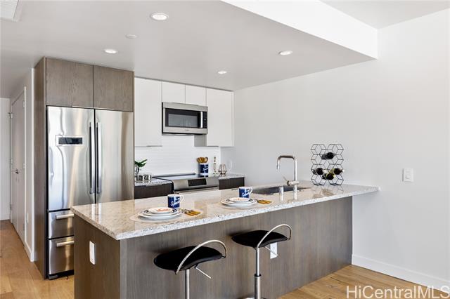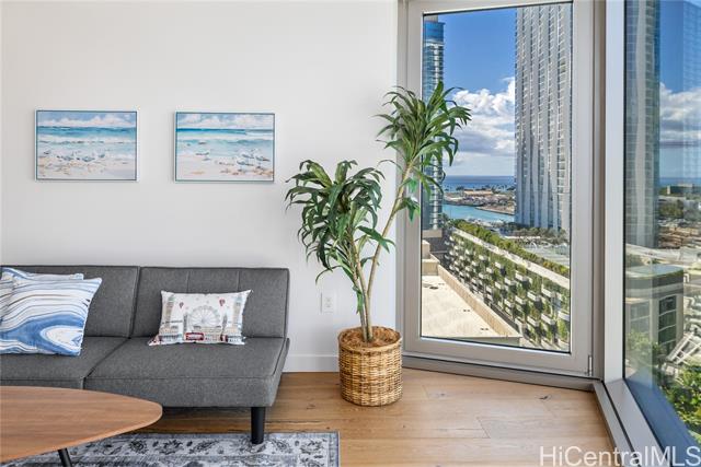 A prestigious and highly convenient high-rise condominium located in the luxurious Ward Village. This unit offers 2 bedrooms, 2 bathrooms, and two separately deeded assigned parking stalls(on the 3rd and 6th floors), along with deeded storage unit conveniently located in front of the parking area. The additional parking and storage are both rentable and sellable separately. Enjoy direct access to Whole Foods Market from Ae'o, and proximity to Ward theater and Ala Moana Center. It also offers luxurious amenities including a ocean-view swimming pool, a lap pool, a state-of-the-art fitness center, a rooftop sky terrace, a BBQ area with dining cabanas, a media room, a dog park, guest suites, and more. The unit is in excellent condition with brand-new paint and is a breezy corner unit. See your future home - this a must see!!