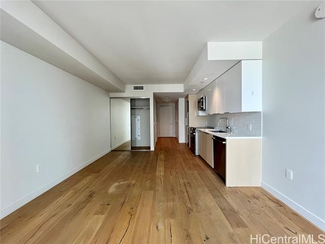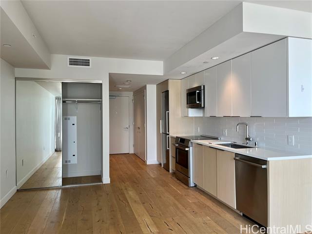 Welcome to the Ae’o that is located in Kakaako at the Ward Village community. Neighborhood provides unique local retailers, world class retail and restaurants, movie theaters, Whole Foods, and so much more. Highly desirable large spacious studio with a Juliet balcony. All Bosch appliances, including refrigerator, electric range, dishwasher, microwave hood and also a in-unit Samsung washer and dryer. Unit comes with original developer upgrade electric power outlet installed next to assigned parking stalls. Ae’o also has a wide selection of resort-like amenities such as BBQ cabanas, movie theater, Sky Terrace on the top floor, indoor and outdoor fitness, recreation room, large lap pool and family pool, kids playground, and a lot more. Maintenance fee $498.64, Reserve Contribution $103.66, Association fee $35.00, Cable/Internet fee $50.82. Pictures were taken in 2023. The unit is currently tenant occupied.