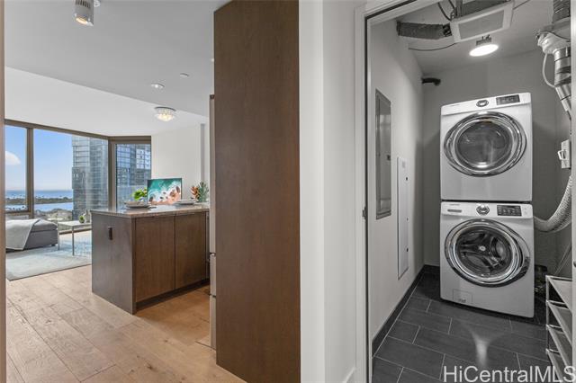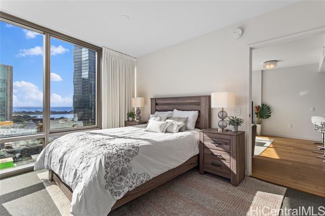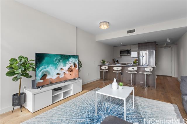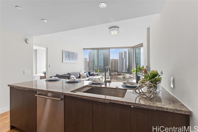 Great opportunity to own a fully furnished, move-in ready two-bedroom, two-bathroom condo unit at Ae'o in the heart of vibrant Ward Village! A 26 SF storage space just next to the assigned 2 parking stalls (Tandem). Conveniently located to Ward Centre, South Shore Market, Ala Moana Shopping Center, Ala Moana Beach Park, Victoria Ward Park, theater, shopping and restaurants. Ae'o residents have direct access to Whole Foods. Enjoy the many world-class amenities available at Ae'o featuring a 25-meter fitness pool, amenity pool with whirlpool, private cabanas, a state-of-the-art gym, spa, private movie theater, a family activity area and dining areas, with so much more!