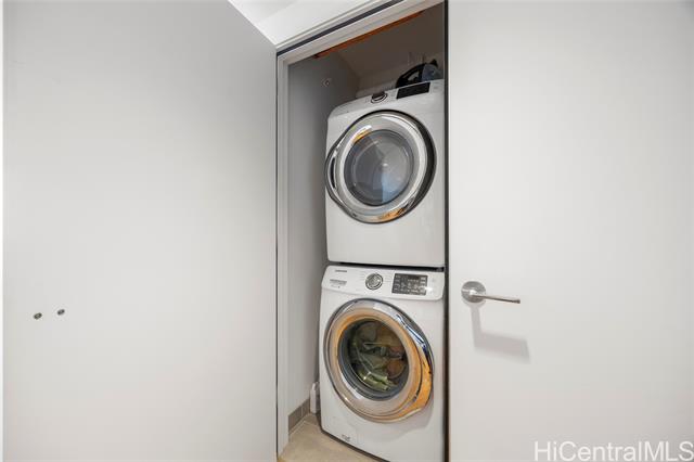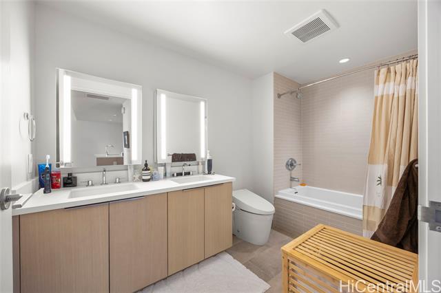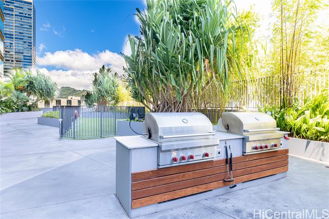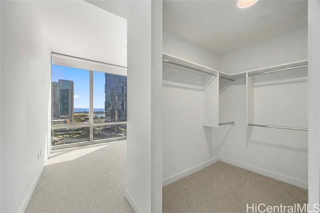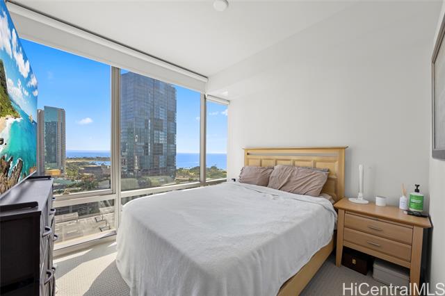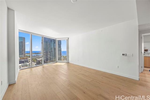 Located in the heart of Ward Village, Ae‘o stands as one of Kaka‘ako’s most sought-after luxury residences. This 1-bedroom unit is situated on the highly coveted "East Side" (the Diamond Head side), widely considered the building's preferred orientation for its iconic views and natural light. The 653 sq. ft. floor plan is thoughtfully designed with a sleek, minimalist aesthetic that emphasizes the stunning beauty of the Pacific. At the heart of the home, the gourmet kitchen features premium Bosch stainless steel appliances, elegant quartz countertops, and a polished backsplash. This open-concept layout creates a seamless flow, allowing you to prepare dinner while gazing out at the coastline. Beyond the residence itself, Ae‘o offers a lifestyle of unparalleled convenience, most notably through its direct, private elevator access to the flagship Whole Foods Market located right downstairs. One or more photos have been enhanced.