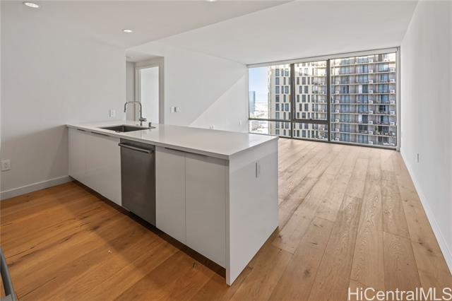 A LARGE 1 BEDROOM 1 BATH IN AE'O WITH STORAGE INCLUDED. This unit has High Quality Engineered Wood Floors in the living room, Floor to Ceiling Windows and a walk-in closet in the Bedroom. This is the larger 1 Bedroom where it is spacious for your couch, coffee table, tv stand and dining table without making the living room feel cluttered. Bosch Appliances in the kitchen, including an Induction range and French Door Refrigerator. Ae'o has many amenities including: Lap Pool, Family Pool, Hot tub, Great Gym, Sauna, BBQ Pavilions, Playground, Yoga room, Party Room, Movie Theater, Rooftop Terrace, 24 hours Security, and more. Ae'o is in A Great Location right in the middle of Ward Village and Kakaako. Direct access to Whole Foods Supermarket and A Few Steps to Straub Healthcare Clinic, Ward Theaters, Restaurants and only a few blocks from Ala Moana Beach Park.
