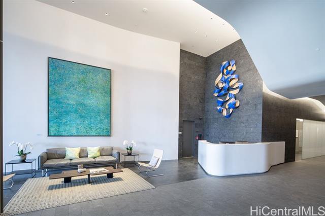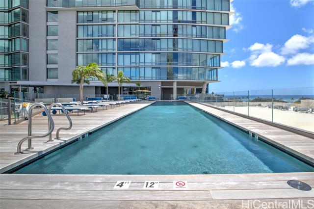 PRISTINE, HIGH-FLOOR, LARGEST 1/1 home at Ae'o with ocean, mountain/city views! This turn-key unit has Bosch stainless steel appliances, engineered hardwood floors, large laundry space, built-in closet system and motorized window treatments. List includes inspiration and Shari Saiki high-end furniture. It has a full-size parking stall on the 3rd floor. Resort-like amenities include a 24/7 hosted front desk, lap and family pools, whirlpool, fitness center, locker rooms with a sauna and steam room, theater, playground, guest suites, outdoor BBQ/dining cabanas, dining and media rooms with a chef's kitchen. Ae'o has direct access to the largest 2-level Whole Foods Market in Hawaii. Experience urban lifestyle in paradise with numerous dining & shopping options, Ala Moana Beach Park, Ward Theaters, Ala Moana Shopping Center, all in close proximity. Condo is currently vacant and easy to show.