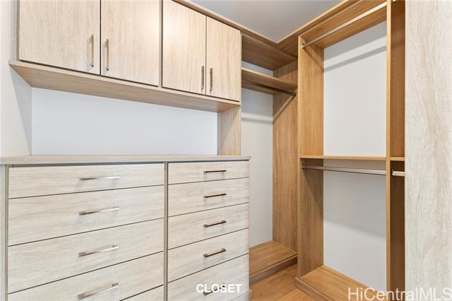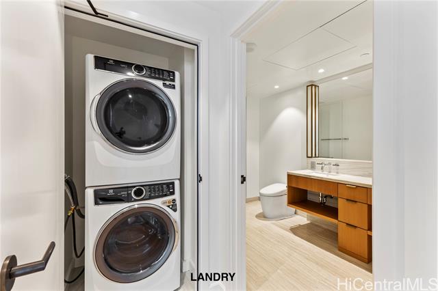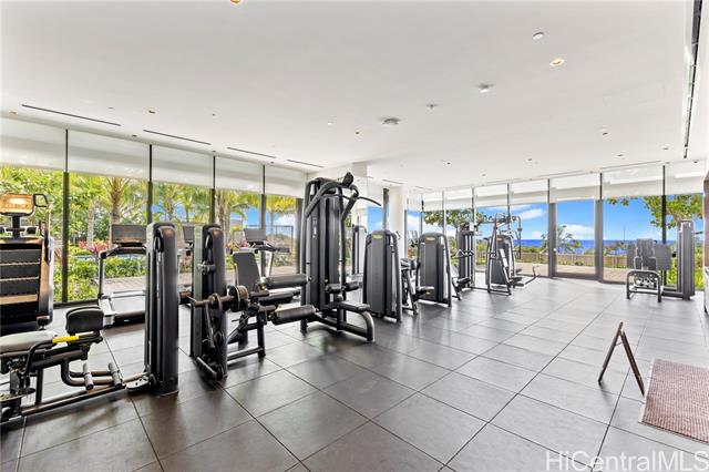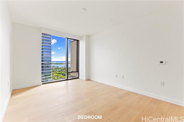 The latest luxury condominium by Howard Hughes is located in the prime area closest to the ocean along Ala Moana Boulevard. Unit 1606 is a 1-bedroom, 1-bathroom residence. From the living room, you can enjoy stunning city views of Ward Village's new condos and glimpses of the ocean. The kitchen is equipped with state-of-the-art appliances, including a wine refrigerator. Both the living room and bedroom feature upgraded motorized shades. The spacious bathroom offers a separate bathtub and shower. Additionally, the seller has upgraded the toilet to the latest Neorest model and enhanced the parking space to accommodate electric vehicles. The condominium boasts a wide variety of amenities. On the first floor, there is an exclusive clubhouse available for private use. The amenity deck includes two pools (one being an infinity pool), a gym, an exercise studio, BBQ facilities, a sauna with a cold plunge, a wine room, and a theater room.