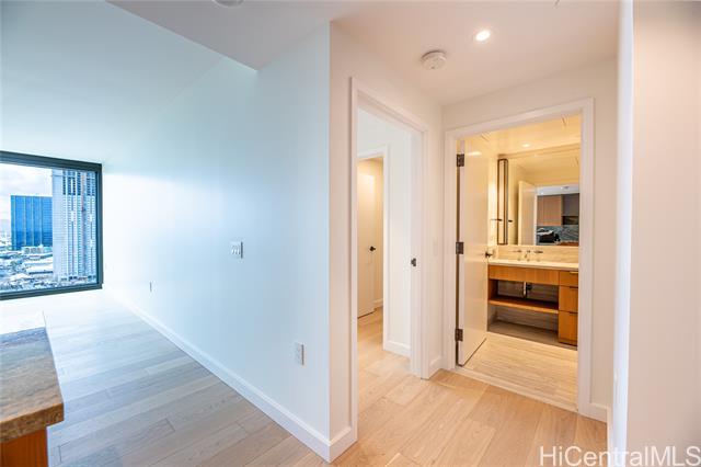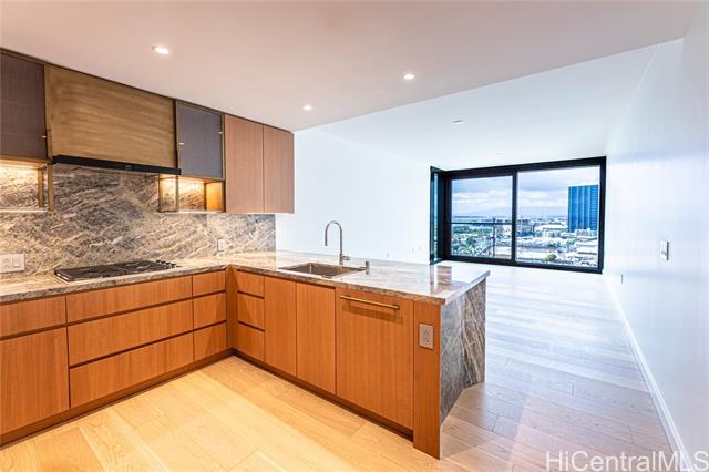 Discover elevated island living at Victoria Place, Ward Village’s newest statement in refined luxury. This impeccably designed 1-bed, 1-bath residence offers 798 sq. ft. of sophisticated comfort, highlighted by 9-foot ceilings and expansive glass walls framing stunning ocean, mountain, harbor, city, and sunset views. Upgrades include motorized living room shades and bedroom manual shades. The open layout flows effortlessly, complemented by a gourmet kitchen with Studio Becker cabinetry and premium integrated appliances. Set along Kakaako’s prestigious front row, Victoria Place delivers resort-inspired living with multiple pools, luxury spa facilities, an advanced fitness center, Pilates studio, sauna, private dining and entertainment rooms, media and theater spaces, meeting rooms, guest suites, and valet and concierge services. The exclusive Lauhala Pool House, complete with its own pool and chef’s kitchen, offers a unique venue for entertaining. A rare blend of style, comfort, and world-class design—Honolulu luxury reimagined. Select photos virtually staged/enhanced.