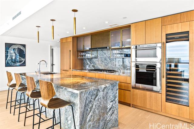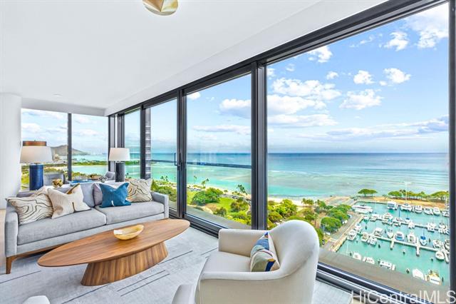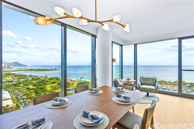 Victoria Place in Ward Village is a stunning example of luxury coastal living in Honolulu. Professionally furnished unit 2200 offers breathtaking ocean and Diamond Head views and elegantly designed interiors. 3 bed, 3 bath and a den/ office. 2200 has motoried shades in every rooms, custom closet and Toto Neo rest toilet in primary bedroom. Victoria Place feature spacious layouts, floor-to-ceiling windows, and premium finishes, creating an atmosphere of sophistication and comfort. EV charging station included. Residents enjoy world class amenities, including multiple pools, a fitness center, yoga room with pilates machine, movie theater, a wine cave, private dining areas, guest suites, and resort style spa. The prime location in Ward Village places homeowners within walking distance of Ala Moana Beach Park, whole Food market, fine dining, shopping and more. This condominium epitomizes modern elegance and convenience, making it one of the most sought-after residences in Honolulu.