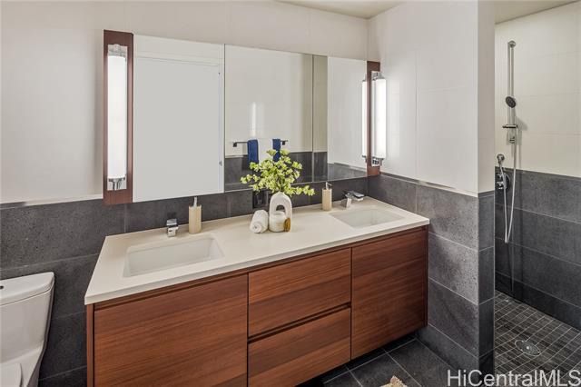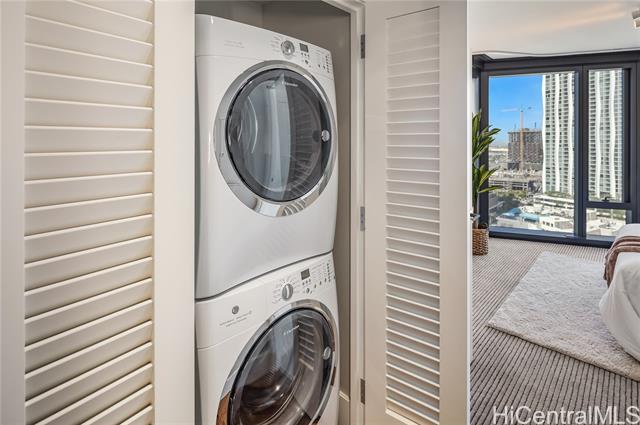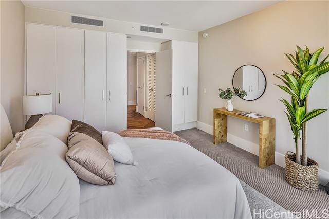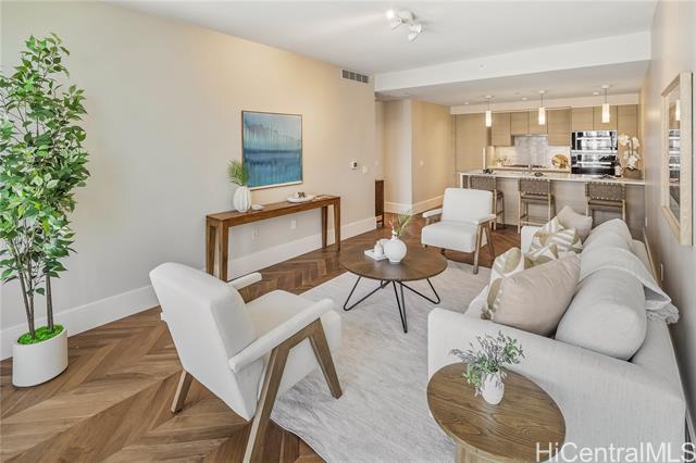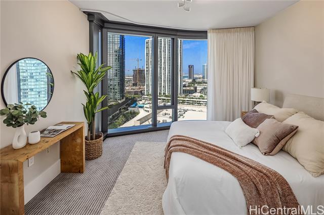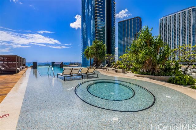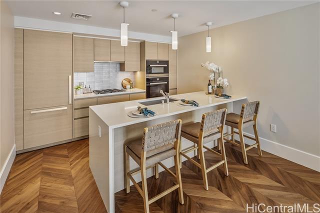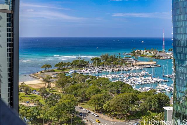 Life at the Anaha, the Hawaii lifestyle you are looking for whether it be full time or just a few months of the year. First off, Life at the Anaha is sophisticated luxury living! From the truly resort-like amenities to front desk Concierge, to be situated right in front of Honolulu's best and largest beach park with friendly ocean waters and land activities too. Plenty of shade, grassy areas and exercise paths. Close by, World class dining AND Ala Moana Shopping Center, the country's largest, open-air mall with world class shopping and a international food court that has a dish for everyone! Step Inside to this home to 9' high ceilings, ocean views from both living room and bedroom, hardwood floors, Miele appliances, gas cooking, Quartz countertops, wine cellar and close to 800 square feet of fine living area. Bring your pets too, they are welcome here. Did I mention the guest suites? Whole Foods is conveniently located across the street. Come see today!