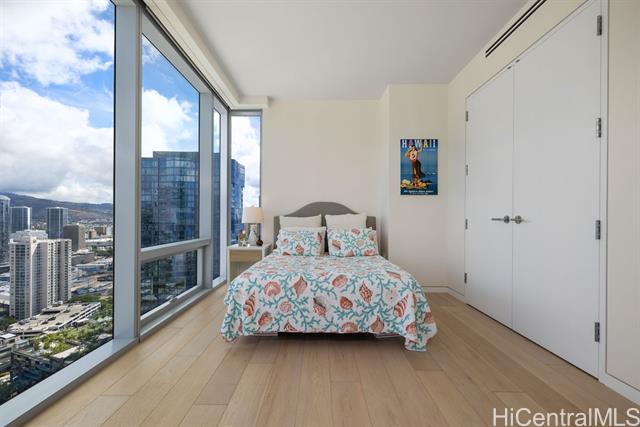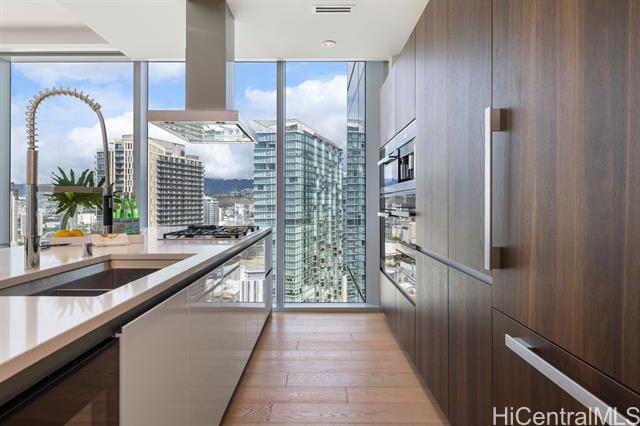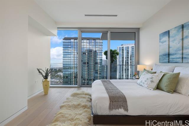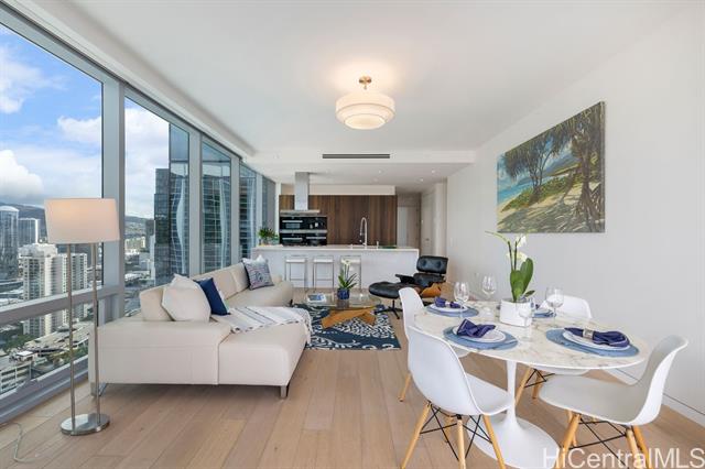 Waiea redefines modern luxury in Hawaii, located front row along Ala Moana Boulevard as the crown jewel of Honolulu's skyline. Its striking glass facade and thoughtfully designed interiors create a residence of unmatched sophistication, offering sweeping views and architectural elegance never before seen in the islands. This home perched high on the 29th floor, captures breathtaking views of Kewalo Yacht Harbor and provides a serene retreat above the city. Life here can be as tranquil or as vibrant as you chose. You might begin your mornings surfing at Ala Moana Beach Park just across the street, spend leisurely afternoons by the mesmerizing infinity pool, or enjoy high tea in the afternoon at Sunset Bar. Crawl up at its movie theater for the latest movies. Entertaining friends and family is easy in the elegant dining room and chef-inspired kitchen. Outdoor entertaining is equally effortless at the BBQ cabanas on the amenity deck. This two-bedroom/two-bath residence itself offers 1,468 square feet (136 m2) of spacious interior living, complimented by a private 68-square foot foyer and a generous 167-square foot lanai that frames panoramic views of both the ocean and the mountain.