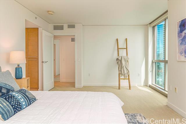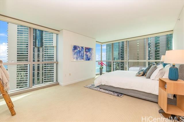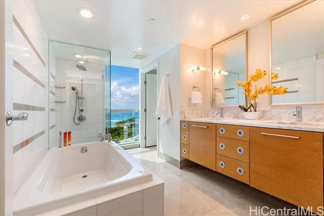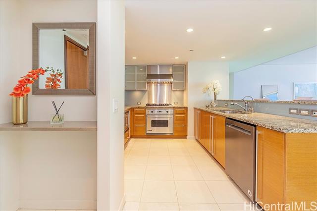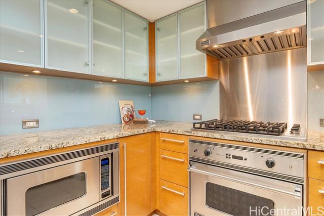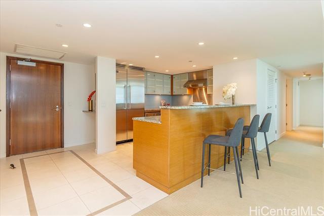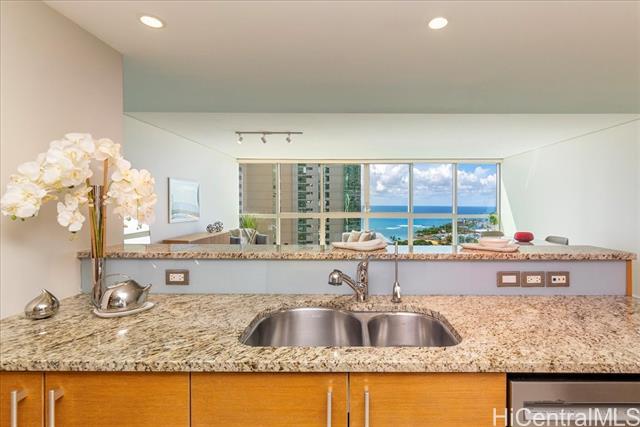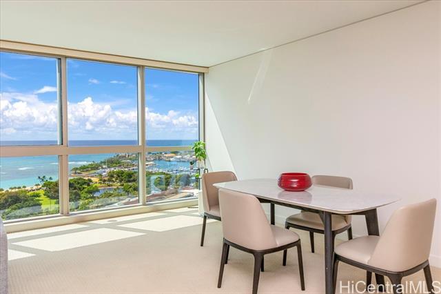 Perched high above the city, this exquisite and well-maintained 2-bedroom, 2-bath residence offers 1,518 sq. ft. of refined living space. The expansive, rectangular living room is framed by floor-to-ceiling windows that fill the home with natural light and capture stunning partial ocean views. The thoughtfully designed layout provides both comfort and privacy. Each room is generously sized, while the primary suite features a luxurious en-suite bath with a double vanity and breathtaking Diamond Head views. The gourmet kitchen is both stylish and functional, equipped with high-end Viking appliances, a gas stove, and granite countertops. This well-maintained residence also includes two standard parking stalls. Enjoy resort-style living with an array of exceptional amenities: a recreation deck, two tennis courts, a heated pool, spas, a walking path, fitness center, billiard room, movie theater, media and conference rooms, concierge-like services, and 24-hour security. Perfectly located near Ala Moana Shopping Center, Beach Park, and Ward Village, this home offers the best of Honolulu’s vibrant urban lifestyle, world-class dining, shopping, and entertainment all just moments away.