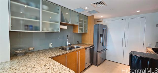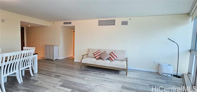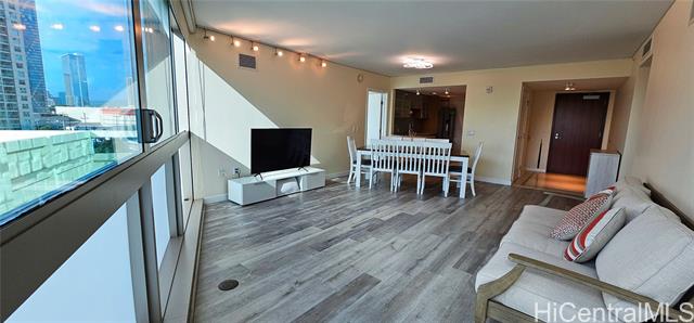 Situated in a highly desirable central Honolulu location, this residence offers exceptional convenience and ease of living. Just moments from shopping, dining, and everyday essentials, it provides a comfortable urban lifestyle within a well-maintained luxury building featuring resort-style amenities. The living area features stylish wood-look laminate flooring and a functional layout designed for daily living. Two covered tandem parking stalls add everyday practicality. Well cared for and move-in ready, this spacious two-bedroom residence is a must-see for those who appreciate the Ala Moana and Kakaako lifestyle, presenting an excellent opportunity to enjoy modern city living with outstanding accessibility.
