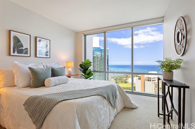 New amazing price for this Rarely available 2-bedroom, 2-bath residence with a lanai in Waihonua. Spanning over 1,000 sq. ft, this home effortlessly combines modern design, comfort, and style. Step inside to rich hardwood floors, elegant custom cabinetry, floor to ceiling windows, and automatic shades for your convenience. The kitchen features Bosch stainless steel appliances, granite countertops, and sleek porcelain tile. Waihonua residents enjoy an impressive array of resort-style amenities, including an infinity-edge pool with spa cabanas, a fitness center, private theater, and inviting BBQ pavilions. The building also offers a luxurious club room, guest suites for visitors, ample storage, and secure entry for peace of mind. Ideally located in the heart of Honolulu, you are just steps from Ala Moana Shopping Center and Beach Park, with Ward Village, world-class dining, entertainment, and the vibrant beach lifestyle all within easy reach. This exceptional residence offers the perfect blend of convenience, luxury, and island living. Note it is pet friendly too!