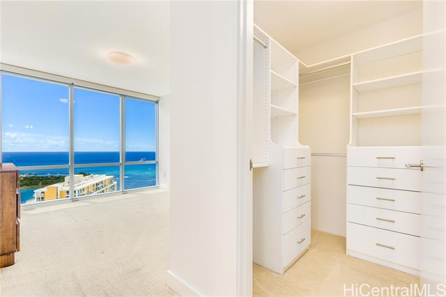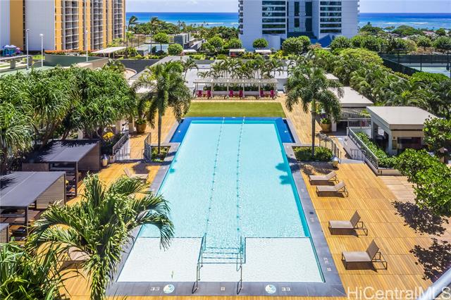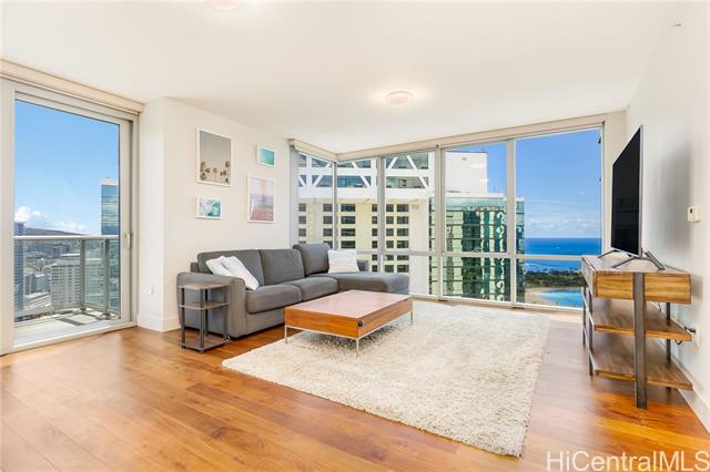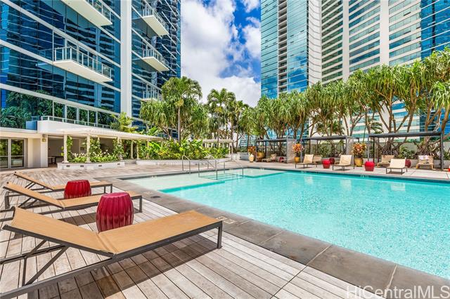 This sophisticated three-bedroom, two-bath corner residence showcases floor-to-ceiling windows with motorized blinds, filling the home with natural light and framing stunning ocean views. The gourmet kitchen is appointed with granite countertops, Bosch appliances, and a large island, while the adjoining lanai invites refreshing breezes that create effortless airflow throughout the space. The building offers an impressive collection of amenities, including a dramatic infinity pool, barbecue cabanas, a private theater, a beautifully designed club room with a full kitchen, a state-of-the-art fitness center with both weight and yoga studios, elegant guest suites, and convenient EV charging stations. Located just a five-minute walk from Ala Moana Shopping Center, world-class restaurants, and even an urgent care clinic, this home places the best of Honolulu at your doorstep. You may never need a car, yet the residence comes with one of the most desirable parking spaces in the building.