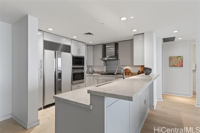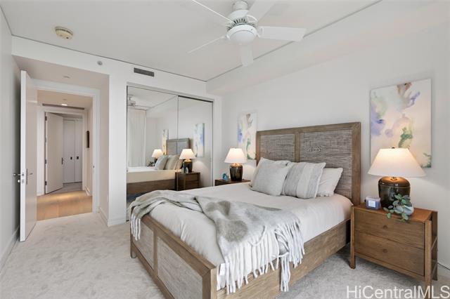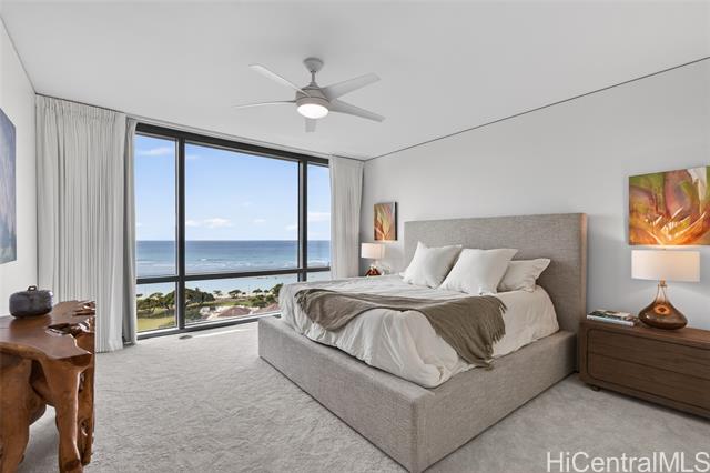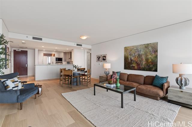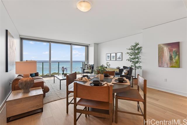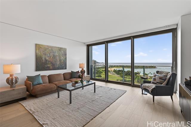 Welcome to the beautifully remodeled Residence 15E at Hokua, Honolulu's perennial luxury condominium. This highly desirable and rarely available 2-bedroom 2-bath "E" floor plan features bedrooms positioned on opposite sides of the living room with brand new engineered hardwood flooring. Floor-to-ceiling windows fill the space with natural light while capturing breathtaking unobstructed ocean, coastline and Diamond Head views. An updated gourmet kitchen with quartz countertops and refinished custom cabinetry compliment the premium Wolf and Sub Zero appliances making this spacious 1,531 sf unit ideal for entertaining. The primary suite offers a relaxing retreat with a spa-like bath and walk-in shower, while the second bedroom is generously sized. Enjoy Hokua’s renowned first-class service and resort-style amenities living in one of Kakaako's premier luxury condominium. Perfectly located near Ala Moana Center, Ala Moana Beach Park, Ward Village, and all the shopping and dining opportunities that the neighborhood offers.