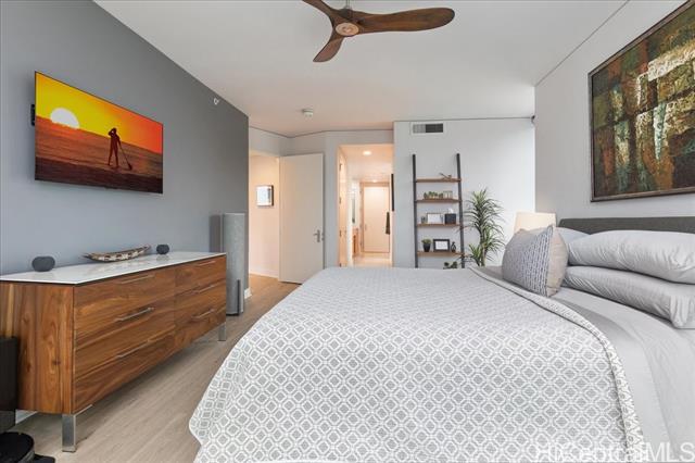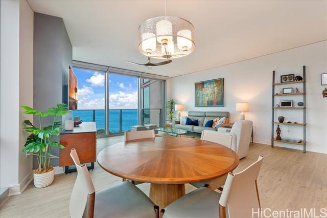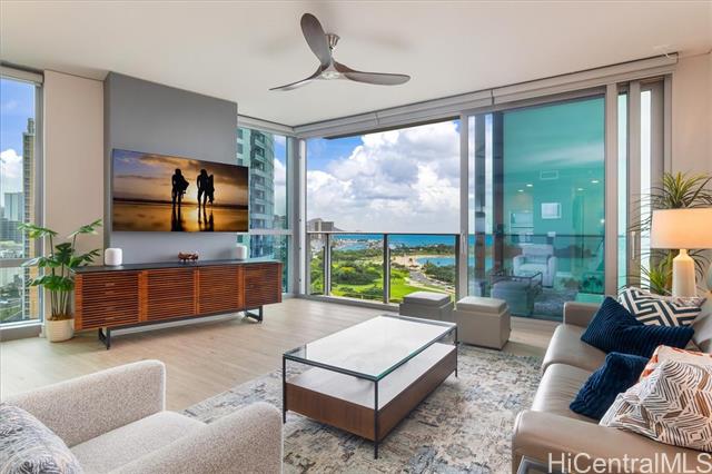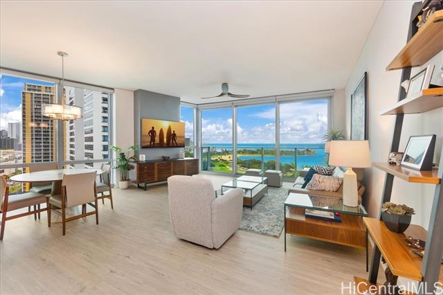 This highly sought-after Diamond Head–facing ocean corner residence is located on the 15th floor and offers one of the largest 2 bd floor plans in the building, approx. 1,620 sf. This desirable corner stack enjoys sweeping ocean and mountain views with no future construction obstructions, providing exceptional view protection and privacy. The prime location is ideal for enjoying weekly fireworks, the Honolulu Marathon starting point, parades, and other iconic island events. Impeccably maintained and in superb condition, the residence reflects true pride of ownership throughout. Over $150,000 in upgrades have been completed, including wood flooring throughout, new appliances, a new AC system, a new hot water tank, EV charger and electric window shades in all living areas except the second bedroom. Floor-to-ceiling sliding glass doors seamlessly connect indoor and outdoor living, inviting gentle trade winds and enhancing the open, airy island lifestyle. The unit layout is filled with natural light and offers an elegant yet comfortable living experience. This is a rare offering that combines size, views, condition, and long-term value.