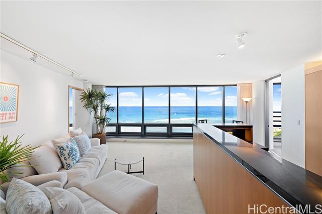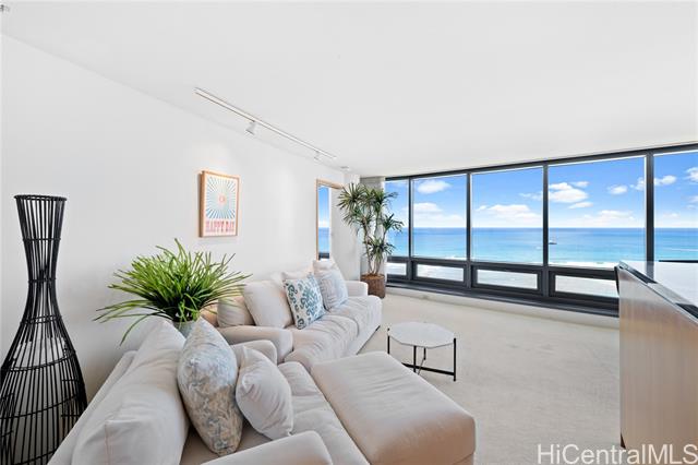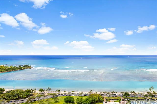Very desirable high floor unit with fabulous ocean view! Enjoy the parallel, unobstructed, breathtaking view as you enter. Ocean and park view from each room. The spacious room has an ideal layout with privacy, with the living room and kitchen in the center and the primary bedroom and 2nd bedroom on either side. The building offers 24 hr security , ample guest parking, storage, tennis court, pool, etc. Located just across from Ala Moana beach park and only a few blocks to dining, shopping, and entertainment spots. The property is priced below its property assessment value. The price is firm and will be sold " As Is".