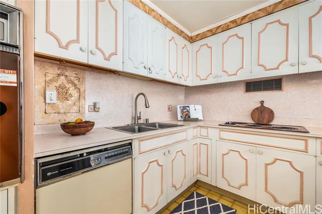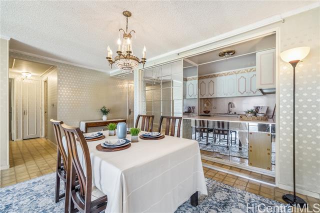 Recently appraised at $805,000 (11/07/2025) and now attractively priced, this residence offers the lowest price per square foot currently available at 1350 Ala Moana. Located on the Diamond Head side, this two-bedroom, two-bath home features one of the building’s larger floor plans at 1,143 sq. ft. The original owner valued its serene outlook above garden-level trees and its cooler side positioning. Interior details include classic wallpaper, mirrored accents, and a chandelier that add timeless charm. Perfectly situated across from Ala Moana Shopping Center and Ala Moana Beach Park, the home provides unmatched convenience and lifestyle. Enjoy east-facing views of the landscaped garden plaza, ocean, and park. Designed by renowned architect Minoru Yamasaki, 1350 Ala Moana is a landmark building celebrated for its elegance and functionality. Unit 606 includes one covered parking stall and a tall storage locker, both located on the first floor. Residents enjoy a staffed lobby with four elevators, 24-hour secured access, pool, hot tub, fitness center, BBQ areas, and a reservable party room with kitchen.