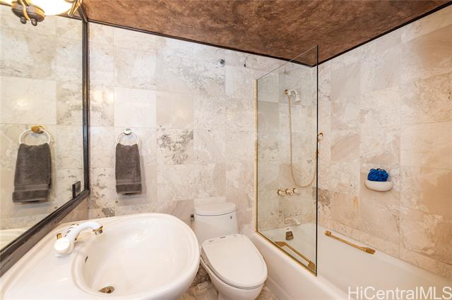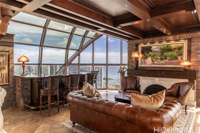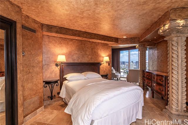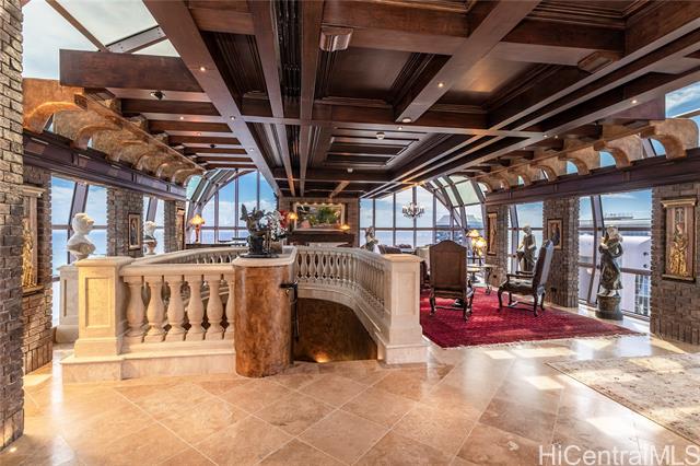One of the kind of properties that can't find any other places in Hawaii. It's presenting an European Villa. Private elevator entrance from 42nd floor and entering a space that made of imported, antique-style brick; marble statues adorn various points around the perimeter, all about 400 years old and looking as stratight out of the Louvre. One Waterfront Towers is located at the very est border of Kakaako and Downtown Honolulu. This location has plenty of walkable options including Salt, Resturant Row, Down to Earth, H-Mart and more. Those who work downtown will find this a very convenient commute and livable location. It's possoble to purchase the next GPH 4502 together to take out whole floors.