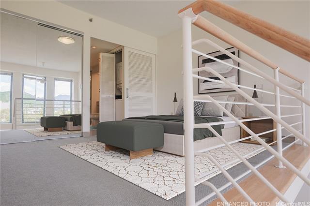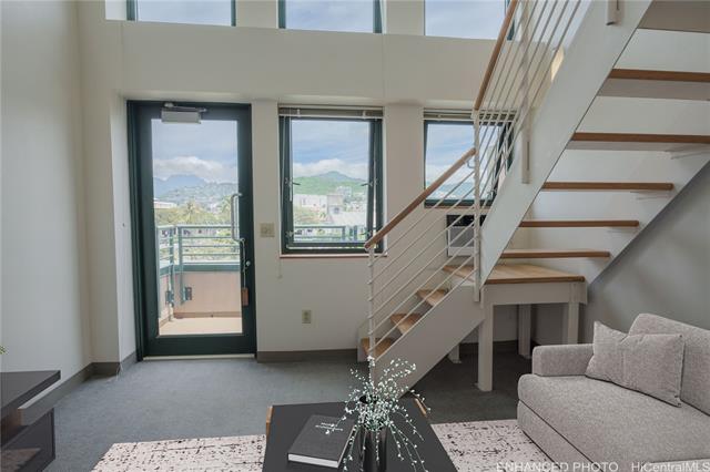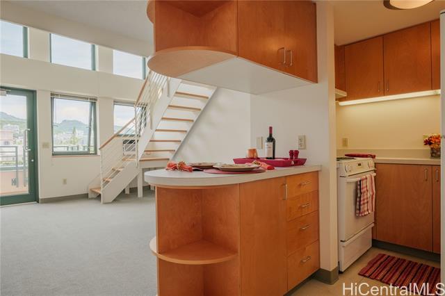 You can't beat the Kaka'ako/Downtown location and price of Honuakaha! Enjoy secure, urban living in this bright and beautifully maintained 1 bedroom, 1 bathroom loft. These top floor lofts are rarely available. This corner-end unit enjoys a panoramic mountain and city view. Built in 1995 and fully equipped with fire sprinklers, the unit also features a stack washer/dryer, lanai off the living room, and newer window A/C and water heater. Enjoy a covered, assigned, secure parking stall steps from the elevator. Within several blocks to downtown, SALT, Down to Earth and H Mart groceries and restaurants, Queens and Straub hospitals, and many bus lines. When the final stop of the rail is built, you will be one block away from the station that goes to Chinatown, the airport, stadium, and Westside!