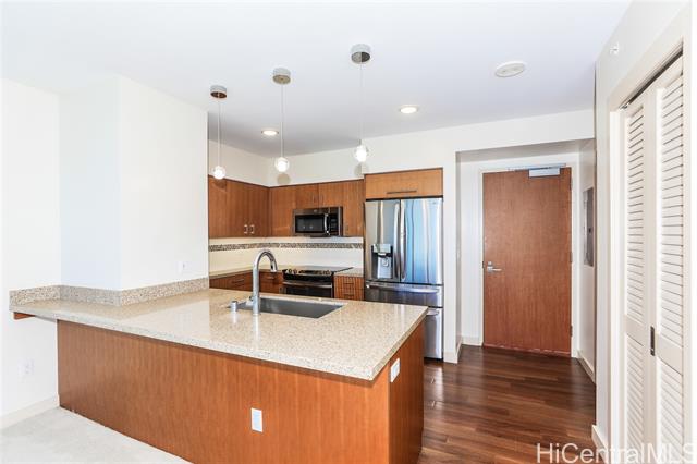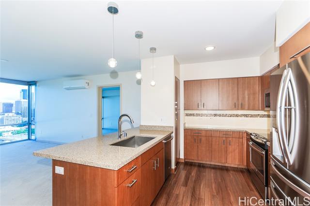 Exceptional price for this spacious 2-bedroom, 2-bathroom Unit with 2 large, assigned, side-by-side parking stalls at Keauhou Place in Kaka'ako, Honolulu, a contemporary high-rise. This modern unit features an open floor plan, with floor-to-ceiling windows, private lanai, allowing residents to enjoy breathtaking city, ocean, and mountain views. High-end finishes include European-style cabinetry, quartz countertops, and energy-efficient appliances. The building provides resort-style amenities such as a swimming pool, jacuzzi, fitness center, BBQ areas, and recreational rooms. Its prime location in the heart of Kaka'ako offers easy access to SALT at Our Kaka'ako, Ala Moana Shopping Center, Down to Earth, H-Mart and various dining and entertainment options. With its blend of luxury, convenience, and modern design, Keauhou Place is ideal for those seeking an urban island lifestyle. 100% hurricane insurance coverage. Smoke free building. Pet Friendly. Secure Buiilding. 3D Virtual Tour available.