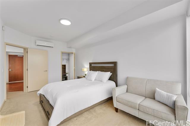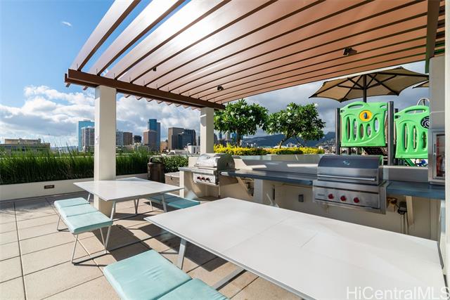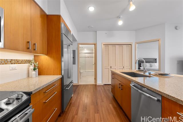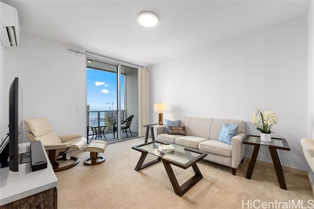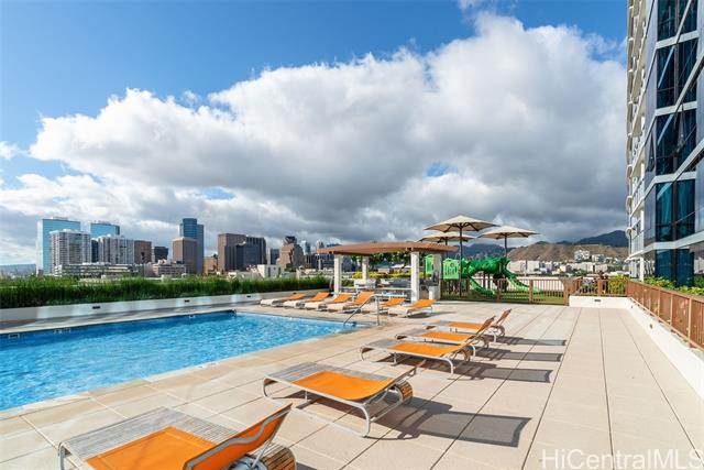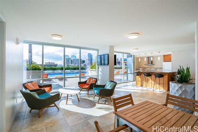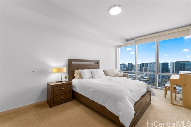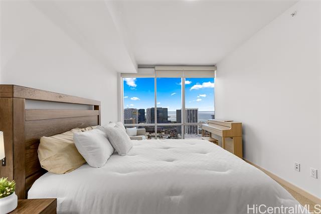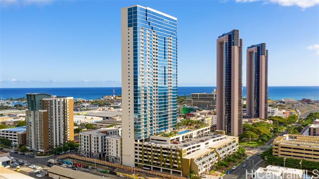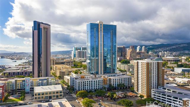 Experience elevated urban living from this 40th floor Penthouse at Keauhou Place. This meticulously maintained 1-bedroom features soaring 9'1" ceilings and floor to ceiling windows that bring in abundant natural light and frame vibrant city and ocean views. The kitchen features a Sub-Zero refrigerator, stainless appliances, and quartz countertops with ample cabinet space. Efficiently stacked full-sized washer/dryer and a tankless water heater leaves room for additional storage. Keauhou Place is PET-FRIENDLY, 100% insured, and offers great amenities including a pool, hot tub, fitness center, BBQ areas, recreation spaces, EV charging stations. A secured & well-managed building conveniently located near SALT, Downtown Honolulu, Ward Village, and Ala Moana Beach Park, with easy access to shopping, dining, entertainment, and recreation. An exceptional opportunity to enjoy urban island living in Kaka'ako!