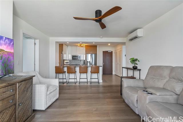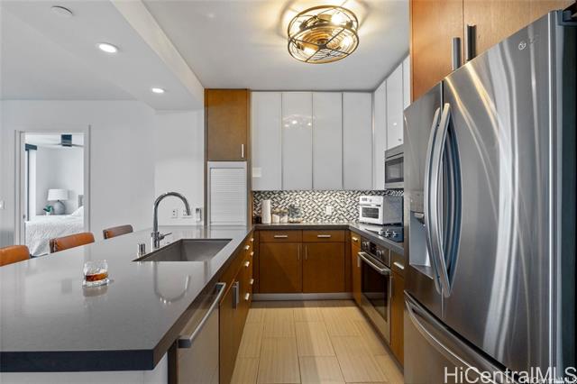 **CURRENTLY IN ESCROW**** 100% replacement value hurricane insurance for this building. Move-in ready, fully furnished & beautifully renovated 2-bedroom, 2-bathroom unit at The Collection in Kakaako! This stylish unit includes 2 parking stalls & a storage locker for added convenience. Enjoy commercial-grade blackout blinds in both bedrooms & window shades in the living room. The 2nd bedroom doubles as an office and features a built-in Murphy bed, maximizing space & functionality. The unit is upgraded with vinyl plank flooring throughout living areas & bedrooms, custom California Closet organizer in the primary bedroom, and new appliances including a washer & dryer (2025) & a refrigerator (2023) with an ice sphere maker to impress guests with fancy libations. Live in the heart of Kakaako just steps from restaurants, shops & community events. Maintl fee: $915/month includes cable, internet Wi-Fi, water, sewer & common area upkeep. Assumable VA mortgage available for qualified buyers: Current balance: $946,454.38 Monthly principal & interest: $5,541.77 Interest rate: 5.25% **Insurance special assessment of $1,700 will be paid off by the seller at closing**