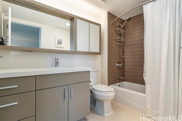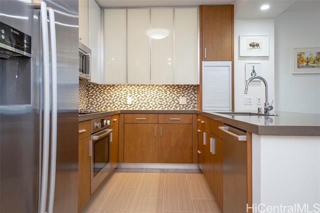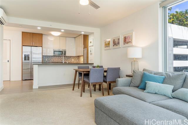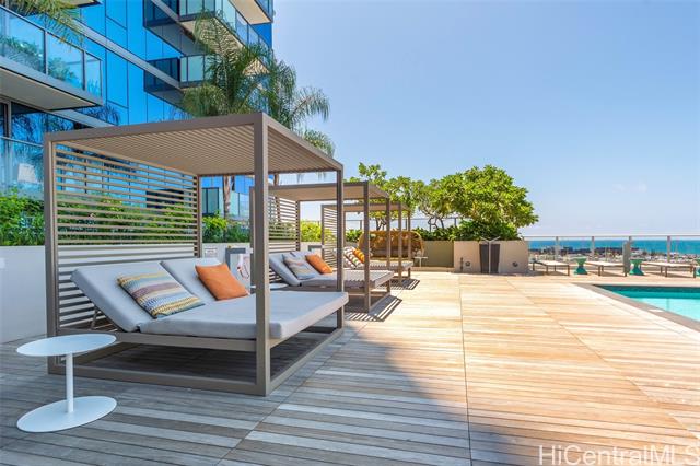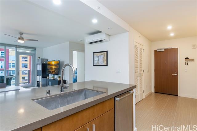 This spacious one-bedroom podium unit offers a larger layout than most tower one-bedroom residences, providing enhanced comfort and livability in an urban setting. Located in The Collection—one of Honolulu’s most sought-after condo communities—this home sits in the heart of vibrant Kakaako, a dynamic neighborhood known for its seamless blend of living, working, and recreation. Enjoy convenient access to major business districts, government offices, Ala Moana Beach Park, Queen’s Medical Center, and Waikiki, all just minutes away. Inside, the residence features approximately 700 square feet of thoughtfully designed living space, complemented by upscale finishes and high-end appliances. Added conveniences include an assigned covered parking stall and a same-floor storage locker for easy access. Residents can take full advantage of resort-style amenities, including a recreation deck with a swimming pool, jacuzzi, and barbecue areas, as well as a fully equipped fitness center and inviting club room. Monthly maintenance fees cover basic cable TV, internet, water, sewer, refuse collection, and common area expenses.