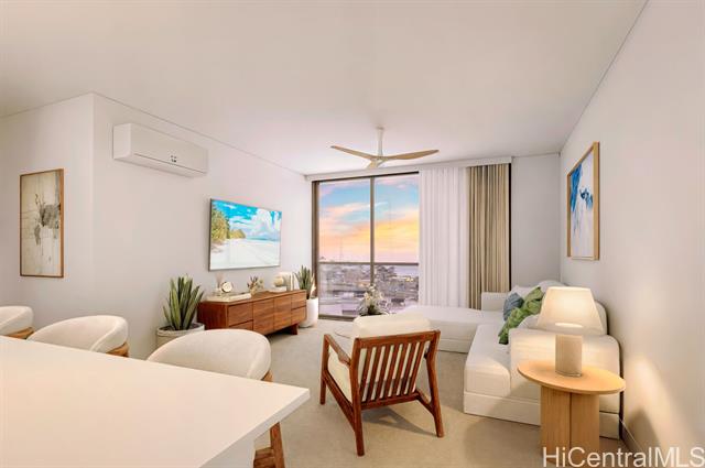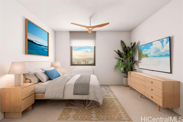 Experience luxury with Unit 3202 at Lamaku, Kahuina's striking 43-story residential tower. This spacious 2-bedroom, 2-bath residence is Ewa-facing, offering beautiful, panoramic views and maximum natural light through its sleek, floor-to-ceiling glass walls. The long entrance hallway provides a welcoming moment of arrival into your sanctuary. As a resident of this modern Kakaako community, you'll enjoy elegant living and incredible amenities on the 10th-floor Recreation Deck, including a pool, spa, state-of-the-art Fitness Center, and barbecue areas. The ground floor features Kuaimeki Market for inviting shopping and dining options. Live in the heart of energizing Kakaako, with the beach, SALT at Our Kakaako, Ward Village, and Ala Moana Center all within a short distance. Kahuina blends convenience, community, and connection for a remarkable island lifestyle. New Project- Tax Assessment, and/Improvements and Property taxes- TBD. Photos- Computer Rendering-Not unit specific