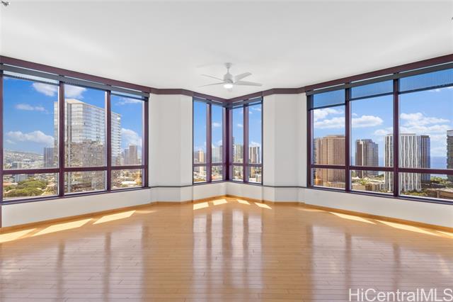 Must see to appreciate! Seller to give $15,000 credit towards closing costs! Spectacular ocean, DH & harbor views from every room in this contemporary high-floorcondominium on the cooler side of the Imperial Plaza. 3 bdrm/2 bath/2 pkg stalls ( close to elevator ) + 2 largelanais, separate storage locker in Kakaako (Honolulu) neighborhood. Excellent location near Whole Foods, H Mart,Ala Moana Beach Park & Shopping Center, Blaisdell, Downtown, SALT, restaurants and shops in Ward Village. Bldgfeatures 24-hour security. Pet friendly with great recreation deck, pool, 2 hot tubs, sauna, BBQ areas. Interiorcomfort provided by 4 individually controlled A/C units. Unit improvements include: primary bath walk-in shower &window, 3rd bdrm queen Murphy bed w/reading lights & side cabinets, remodeled kitchen w/"to ceiling" cabinets,granite counters, glass tile backsplash and stainless steel appliances, view-enhancing bronze mesh MECO rollershades in all rms, new halogen light fixtures, sound-deadening paneled solid-core doors with nickel door hardware &magnetic floor stops, Leviton Décora light switches and electrical outlets, etc. *Some photos have been "virtually"staged.