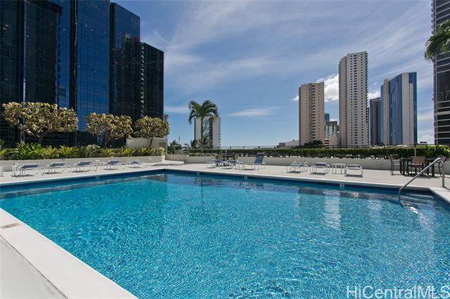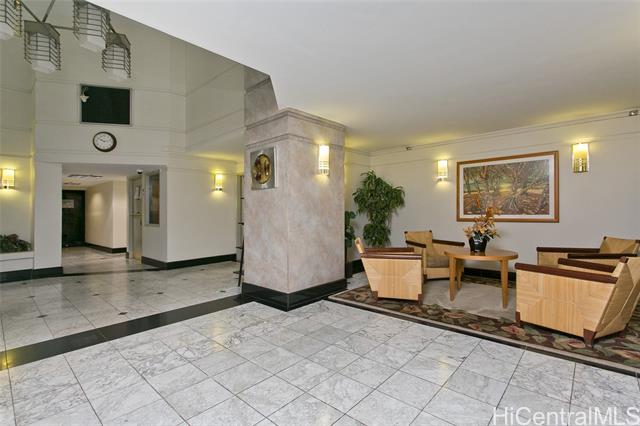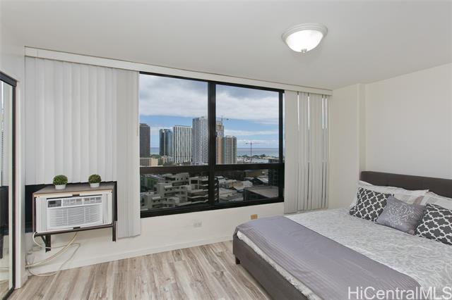 Enjoy city, ocean, and coastline views from your unit! This spacious 1bed/1bath unit features laminated wooden flooring throughout the unit, popcorn ceiling is removed for a clean and bright look, adequate storage space, and the convenience of an in-unit washer & dryer. Additionally, the unit offers a covered parking space in a gated parking structure and a storage locker, and more...Residents enjoy resort-style amenities such as a salt-water pool, jacuzzi, sauna, fitness center, and a BBQ cabana in the beautifully landscaped deck area. Royal Capitol Plaza also has a porte cochere entry for easy pick-up & drop-off, a car wash area, and an on-site mini mart for your convenience. Appreciate a building that is 100% hurricane insured, with installed fire sprinklers, lots of guest parking stalls, and 24-hour security for added peace of mind. Also, it offers very reasonable maintenance fees, which are hard to find in the Kakaako area. Perfectly situated near Kakaako, Downtown, and Ala Moana, this home is adjacent to Honolulu's top medical, governmental, & financial districts. *** Open House on October 8, 2025 (Wednesday) 10 am-1 pm***