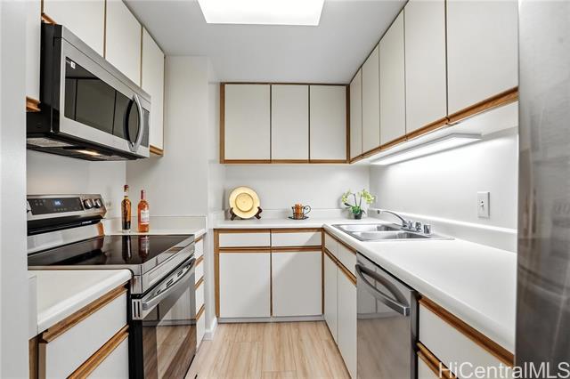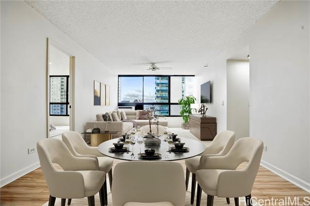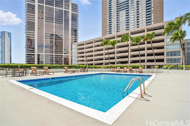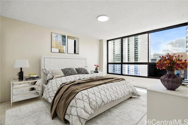 Beautiful, Clean, & Move-in Ready 2-BEDROOM 2-BATH unit with high ceilings. Own a high floor oasis in the sky at popular Royal Capitol Plaza with coastline, Downtown, & mountain views in the heart of desirable Kakaako! This is one of the best values available in one of Honolulu's most popular neighborhoods and features a spacious layout including updated kitchen appliances, reglazed bathtubs, new luxury vinyl plank flooring, new carpet, new window a/c, new lighting, & one covered parking stall. Located in a well-maintained, amenity-rich building featuring a salt water pool, exercise room, sauna, jacuzzi, storage, on site-security, guest parking, fire sprinklers, car wash space, porte-cochere, and more. Close to excellent shopping, restaurants, medical facilities, beaches & parks, Downtown Honolulu, Ward, & Ala Moana Center! Live, work, and play ... own this piece of Hawaiian paradise today!