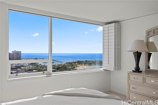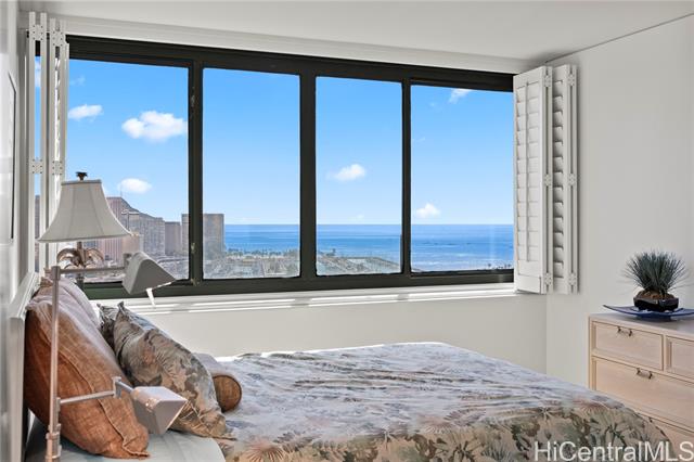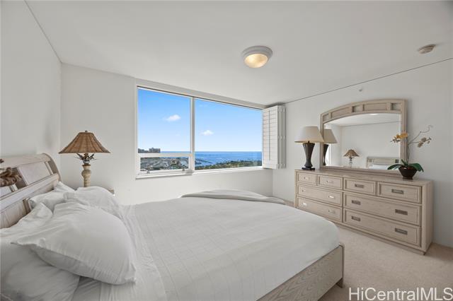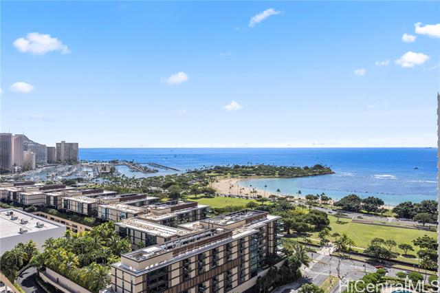 Stunning ocean and city views from every room. This two-bedroom, two-bathroom unit is located in one of the premier locations in Honolulu. The property is situated directly across the street from Ala Moana Shopping Center and is in close proximity to Ala Moana Beach Park, as well as numerous shops and restaurants in Ward Village and Kaka’ako. Building amenities include a swimming pool, BBQ areas, a tennis court, a playground and more.