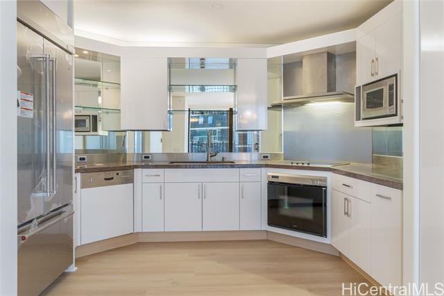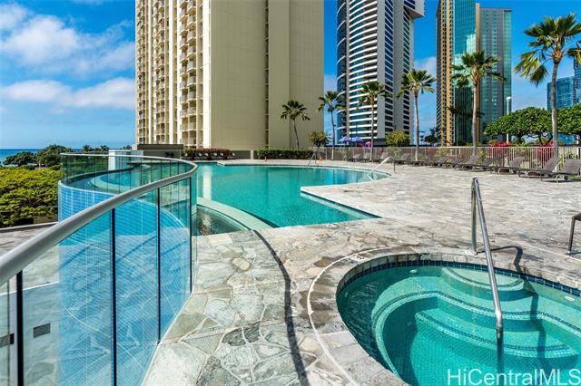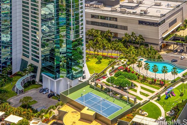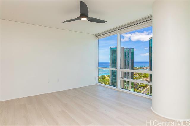 Rarely available and highly sought after double unit featuring 2 large primary suites in the prestigious Hawaiki Tower. Beautiful corner end unit with spectacular ocean & city views from every room with the floor to ceiling windows that let in lots of natural light. Enjoy lots of space with this open floorplan totaling over 2000 SF. THREE parking stalls which all have storage cabinets above each stall. Upgrades include new flooring throughout the living, dining, kitchen and bedrooms, interior is freshly painted, and new cabinet doors in the kitchen and bath. Relish in luxury amenities including the heated pool, whirlpool, tennis court, putting green, play area, library & more or head to the sandy beaches at Ala Moana Beach Park across the street. Roam the neighborhood full of shopping, restaurants, coffee shops, Ala Moana Shopping Center, Ward Center and world-famous Waikiki just a mile away. Pet-friendly building known for low maintenance fees. One or more photos have been enhanced.