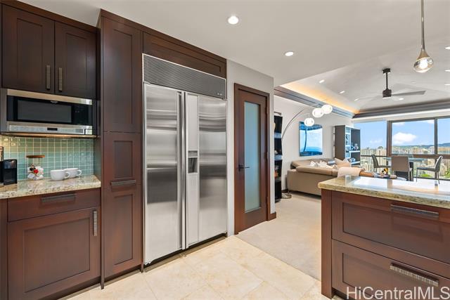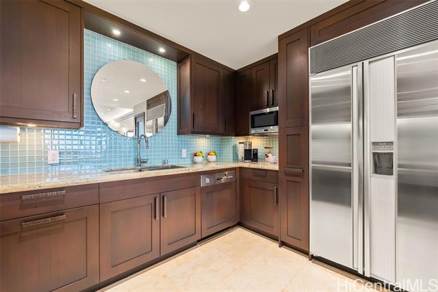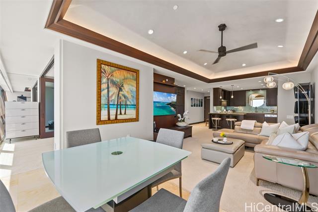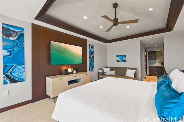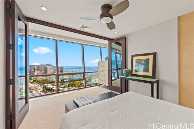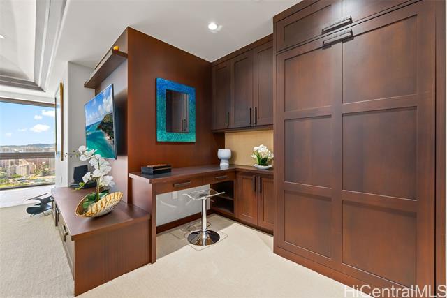 A Rare Opportunity for Elevated Island Living – 44th-Floor Residence in Hawaiki Towers. Experience luxury in this exquisitely renovated 2-bedroom, 2-bathroom residence perched on the 44th floor of the coveted Hawaiki Towers. Expansive floor-to-ceiling windows in living and bedrooms. This stunning home offers panoramic views of Magic Island, Ala Moana Beach Park, sunsets over Diamond Head, and the Koolau slopes. This fully furnished and redesigned (2006/2014) unit offers the perfect blend of luxury, convenience, and breathtaking views. Two secured covered parking stalls and storage, this home provides unbeatable comfort and functionality. Custom high-end finishes, including sapele wood cabinetry, gourmet kitchen, and a primary suite to enhance the refined living experience. Resort-style amenities make this property truly exceptional. The infinity-edge pool & spa offer a perfect place to relax, and the pickleball & tennis courts offer a great way to stay active. Located across from Ala Moana Center and just steps from the beach, this unit provides an unbeatable island lifestyle, where everything you need is right at your doorstep. See Video & 3D Tour Owner is Licensed HI Realtor