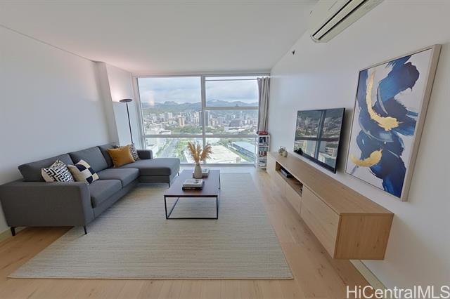 Step into a high floor, quality-of-life Kaka'ako condo more peaceful than the rest and closer to Downtown workplaces and freeway access. The Neal-Blaisdell Convention Center is just across the street, offering convenient access to weekly events, concerts, and conventions without the headache of hunting for limited parking. Less than 1 mile away lies the Oahu Farmer's Market, Ala Moana Shopping Center/Beach Park, SALT shops/bars, harbor cruises, neighborhood events, and Downtown galas. Unrestricted Convention Center and mountain views, near the Skyline Light Rail's future Kaka'ako Station. The 1-Bed 1-Bath, 31st-floor condo is equipped with split a/c units, stainless steel appliances, covered lanai viewing the iconic Convention Center, fire sprinklers, and in unit washer/dryer. Building amenities include: Pool and hot tub, 24 hr security, fitness center with barbell bench press, rec center, and BBQ stations. Pets allowed! Prime parking stall located on the 4th floor. Tenant occupied, contact agent for virtual showing. Hurricane insurance is 100% covered by the special assessment that Seller will pay off at closing, one less thing to worry about and a must-have to obtain a mortgage.