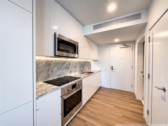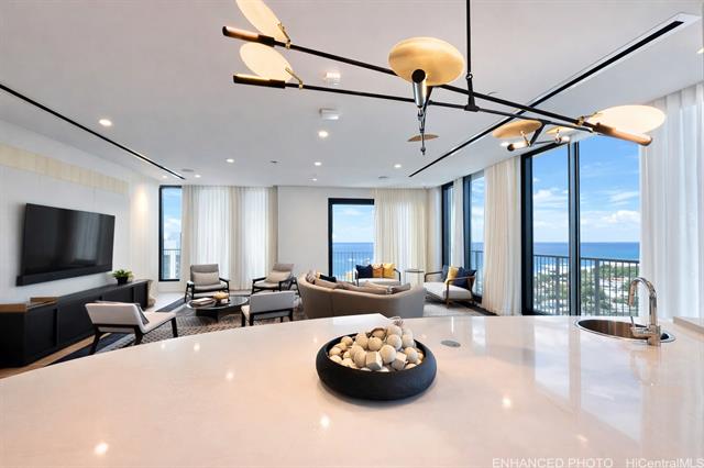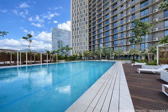 Rarely available “16 Stack” furnished studio showcasing beautiful mountain views. This exceptional turnkey opportunity is perfect for investors seeking immediate rental potential or homeowners looking for a stylish, move-in-ready residence. Thoughtfully designed with the premium Inspiration Furniture Package, the unit features sleek glossy white seamless cabinetry, elegant marble countertops, and modern finishes throughout. Full sized parking stall! Ideally situated in the heart of vibrant, walkable Ward Village, residents enjoy world-class amenities, premier dining, shopping, and entertainment just steps from their door.