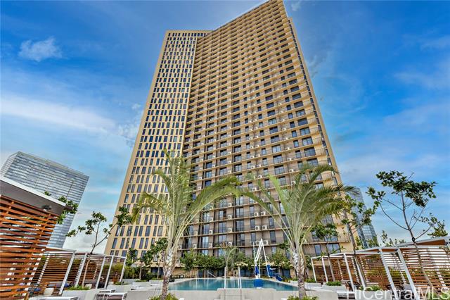 Immaculate gorgeous ocean-view studio with a lanai at A'ali'i in Ward Village, competed in 2021. Features sleek European-style cabinetry, custom Murphy bed, floor to ceiling cabinets and thoughtfully designed storage. The modern kitchen showcases clean European design with glossy integrated cabinetry, stone counters, a full height marble style backsplash, premium stainless steel Bosch appliances and polished fixtures - elegant, efficient and beautifully connected to the living space. Sold fully furnished with A/C, appliances, furnitures, new washer/dryer and cookware included. Enjoy the 8th floor resort dect with pool, spa, keiki pool, BBQ cabanas, lounges and play areas. The 42nd-floor Sky Deck offering a fitness center, yoga studio, lounge spaces, game room and open air terrace overlooking the city and coastline. Includes one assigned parking stall, generous guest and retail parking stalls, pet friendly living, surf/bike storage, dog park/shower room and 24 hour staff. Steps to Whole Foods, Ward Village, Shopping outlets, dining, parks and Ala Moana Beach. This residence blends modern island living with a clean European feel in Honolulu's premier master-planned community.