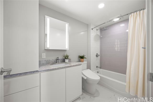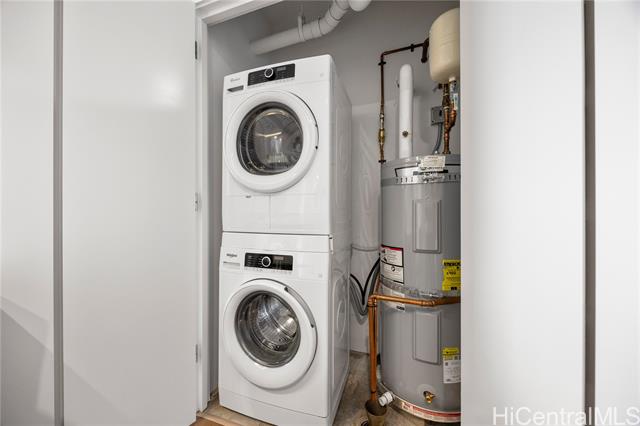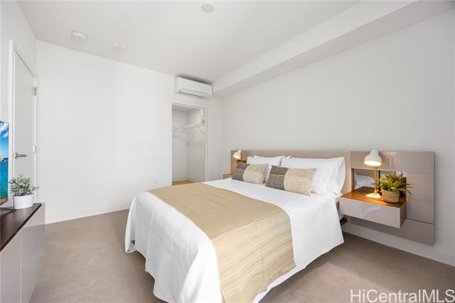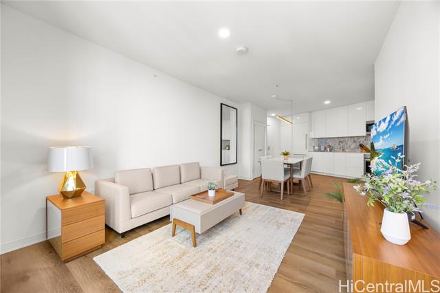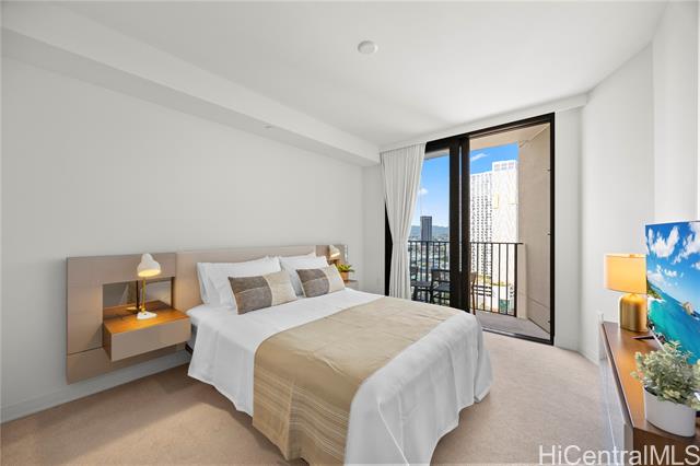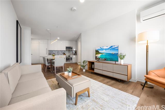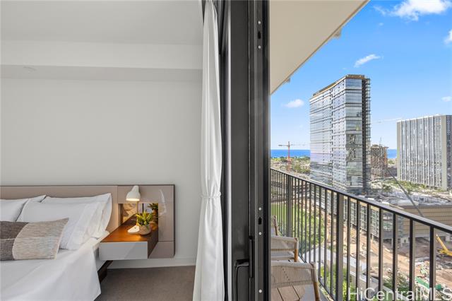 Spacious and large 1-bedroom in the heart of Ward Village. Park and ocean views. Good layout with privacy and natural light. Designed for both everyday living and entertaining. Fully furnished with modern finishes and a kitchen with with cabinetry, built-in appliances, and quartz countertops. Storage locker located directly above the parking stall for your convenience. Close to parks, shops, cafes, galleries, and transit. Enjoy premium amenities such as a gym, rooftop terrace, 24-hour concierge, and more.