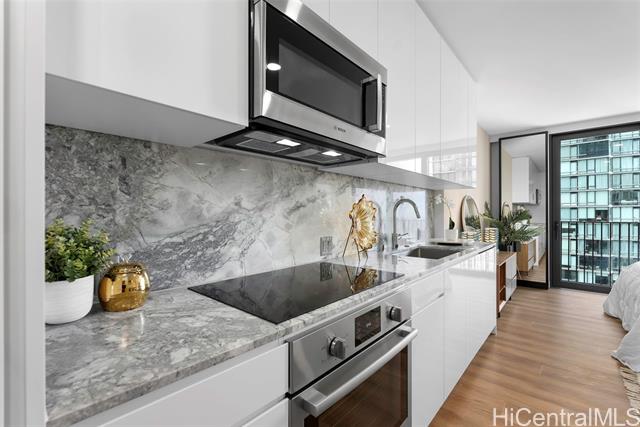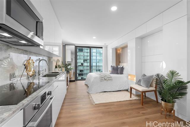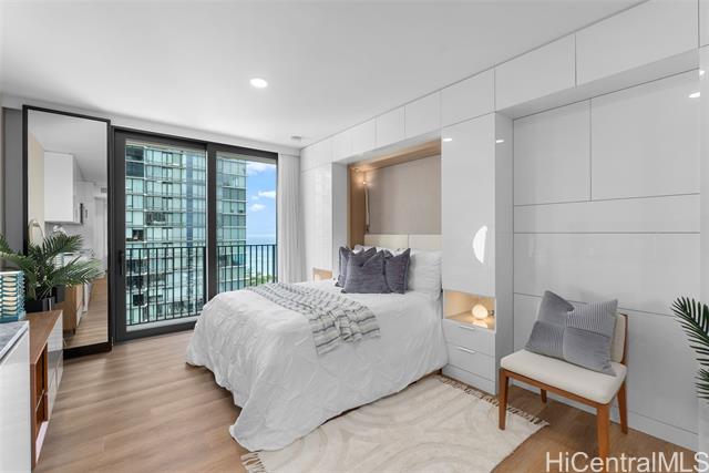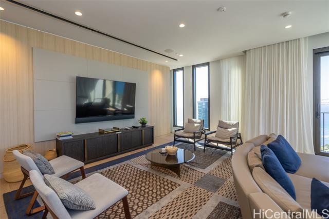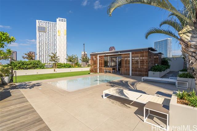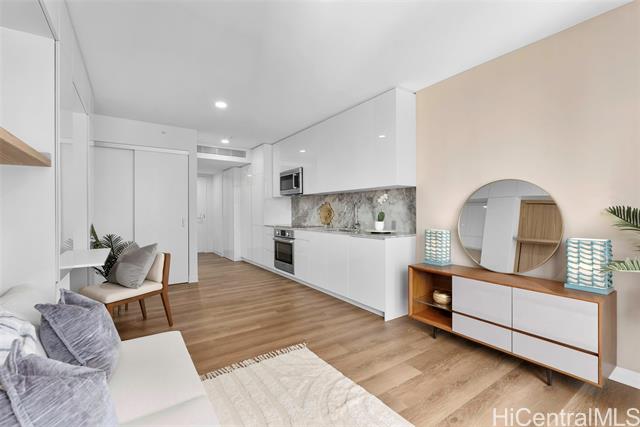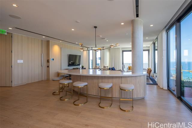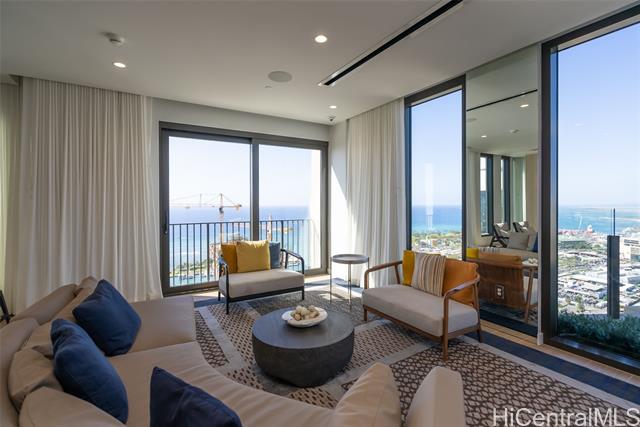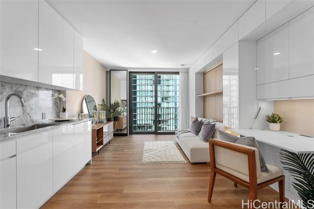 Luxury at a HUGE value! Elevated island lifestyle in a newer turn-key IMMACULATE high-floor furnished studio residence in A‘ali‘i in the HEART of vibrant Ward Village. Preferred side of a building designed for efficiency & aesthetic - smartly appointed energy efficient washer/dryer, Mitsubishi split A/C, double-paned glass windows, Bosch appliances, quartz counters and backsplash, LVP flooring, and private lanai that frames the stunning coastline, city, and mountain views. Lower monthly fees w/access to 2 levels of resort-caliber amenities: gym and yoga room on the 42nd floor Sky Deck & the 8th floor amenity deck w/infinity pool, spa, BBQ cabanas, keiki play area, and multiple indoor-outdoor gathering spaces. **PET Welcoming** community features an on-site dog park, concierge staff, 24/7 security, secured entry/elevators & lots of guest parking. Very close to Ala Moana Beach Park, Whole Foods Kakaako, epic nearby eateries, and retail stores—all within the award-winning Ward Village community. ADDED HUGE BONUS: Unit 2906 INCLUDES secure assigned parking and a secure DEDICATED STORAGE ROOM. Exceptionally well-priced, far below the tax assessed-a huge compelling value! DO NOT MISS!