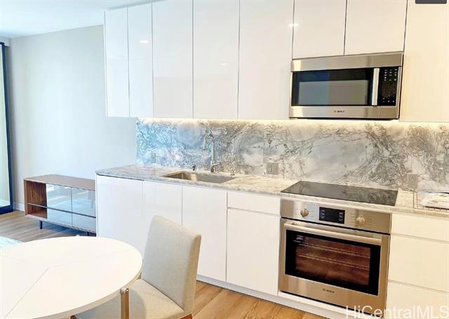 A'ali'i #2908 is a rare high-floor studio in Ward Village that includes a dedicated storage unit, an exceptional and highly sought-after feature in this community. Located on the 29th floor, this residence offers beautiful ocean, city, and sunset views through floor-to-ceiling windows and from its private lanai. The efficient layout is complemented by premium finishes, custom cabinetry, Bosch appliances, and smart design that maximizes space and comfort. A'ali'i provides resort-style amenities such as the 42nd-floor Sky Lounge with 360-degree views, a modern fitness center, yoga room, pool, cabanas, BBQ areas, private lounges, and 24-hour security. Perfectly positioned steps from Whole Foods, Ala Moana Beach Park, dining, cafés, and shopping. Whether for a primary residence, getaway, or investment, this rare storage-included unit delivers exceptional convenience, value, and style in the heart of Ward Village.